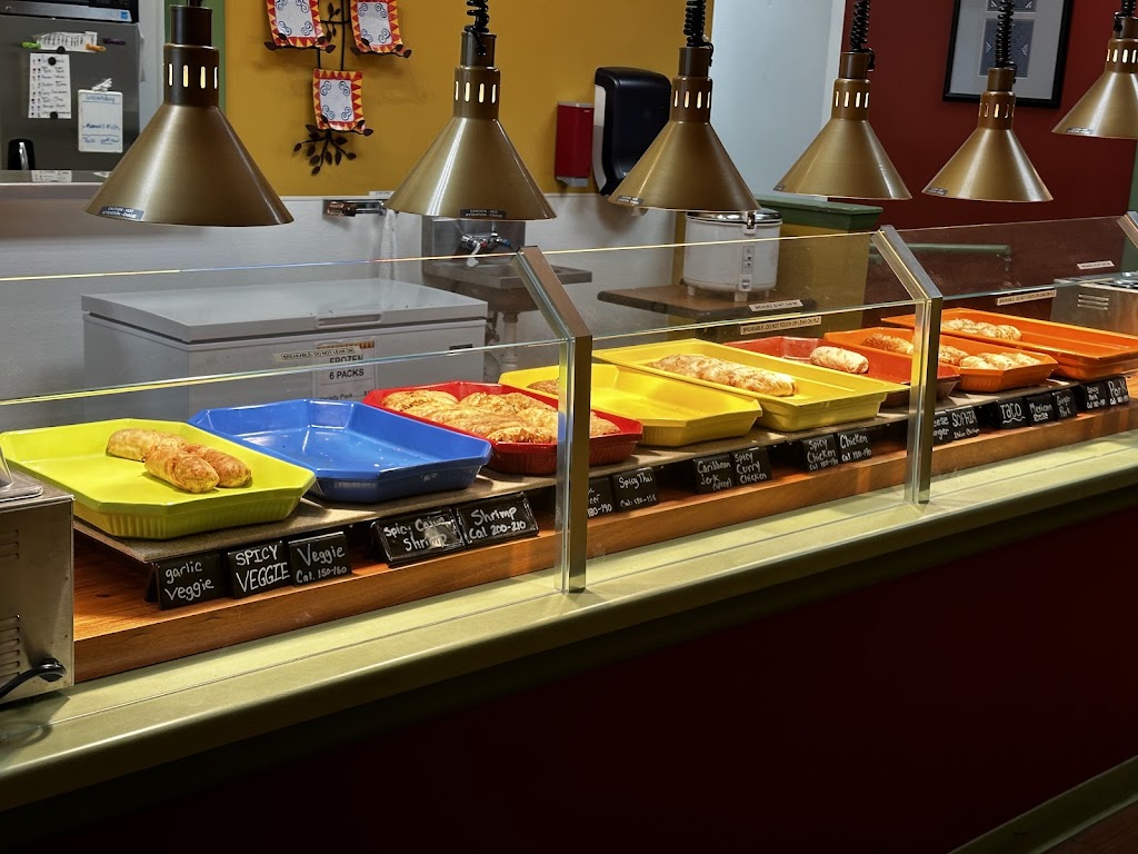 Basic counter-serve operation in a shopping strip specializing in an array of baked egg rolls.