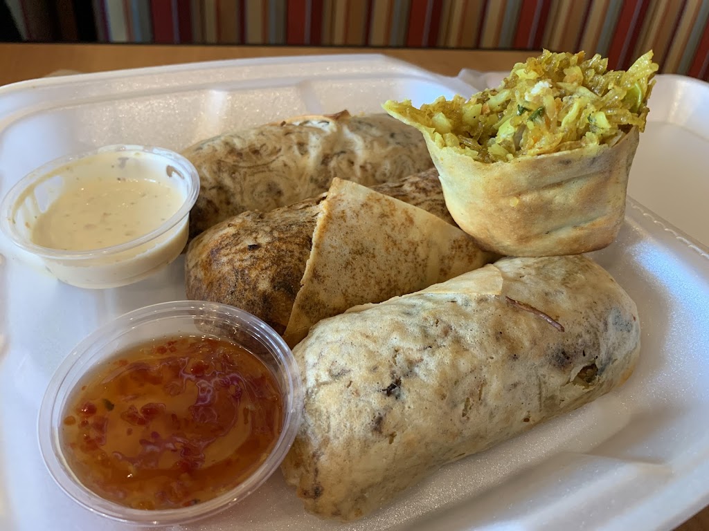 Not your average eggroll! Delicious variety of baked eggrolls, I loved the cabbage roll too, and all the different styles of sauces! Highly recommend.