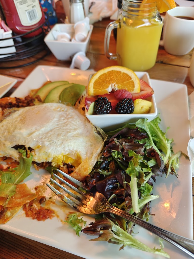 Went here for lunch yesterday with my good friend and it was our first time stopping here. So glad we did because the food was so good! My friend had a Greek omelette with fruit and hash browns and I had a steak quesadilla with fruit. YUM!! The staff was attentive and friendly. The atmosphere was clean and welcoming. I’m already looking forward to going back. The prices were reasonable and portions more than ample. Go see for yourself 😁