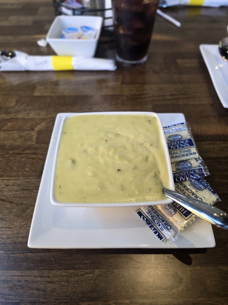 My only problem was, the pumpkin soup I ordered was absolutely delicious, but it had bacon in it, which I cannot eat. When I asked what the soup was today, I was told Pumpkin. No mention was made of there being bacon in it and it never crossed my mind that bacon would be in pumpkin soup. I do not eat it because I'm allergic to it, and I'm paying the price now but will be fine tomorrow, but what about people that can't eat it for religious reasons?