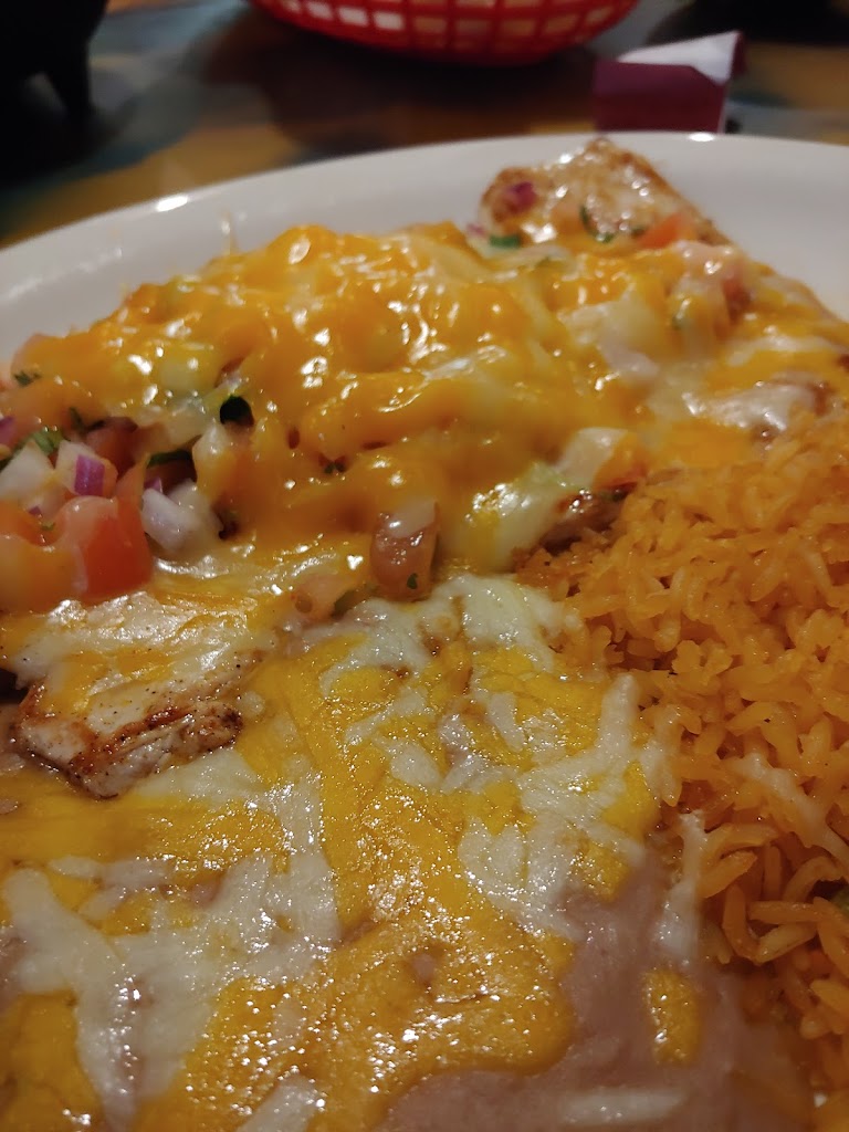 My husband and I go to a new Mexican restaurant everytime we go out of town. We always strive to find one that’s as good as our hometown restaurant. This place is probabaly our top rated of all we’ve been to. Atmosphere is traditional and fun. Staff was pleasant and efficient. Large portions, great prices and the food tasted amazing! Definitely will go back!