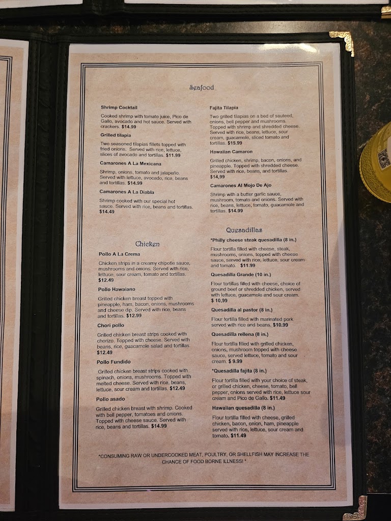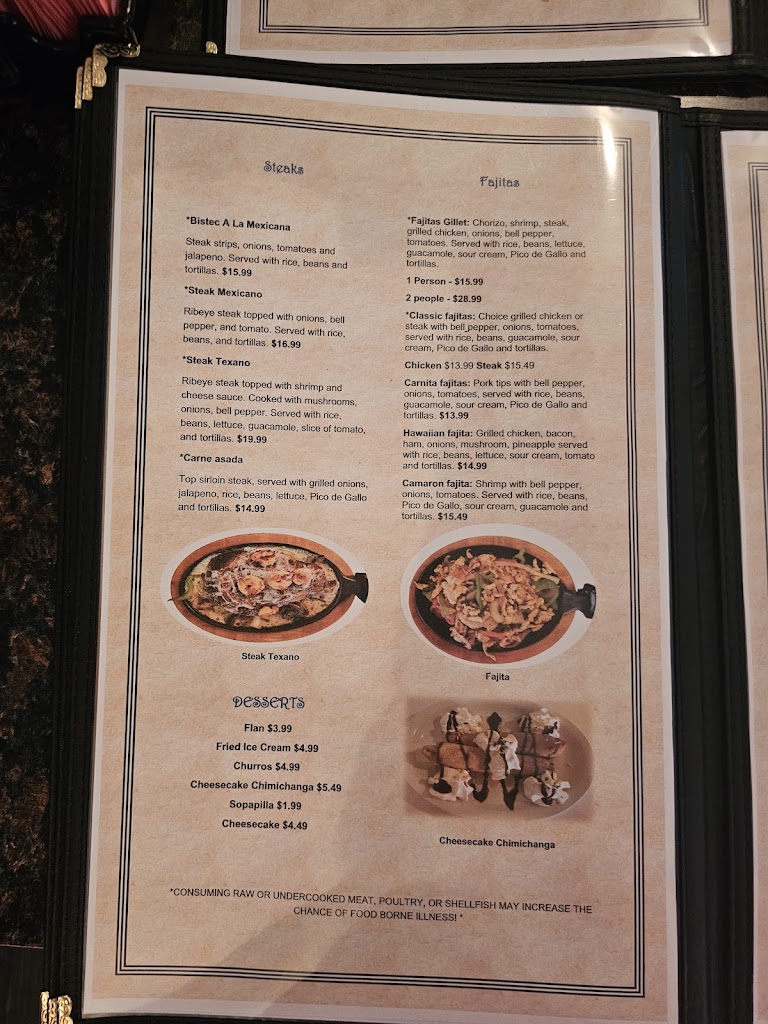 Favorites are the Fajitas Gillett, and the Shrimp Chimichanga.