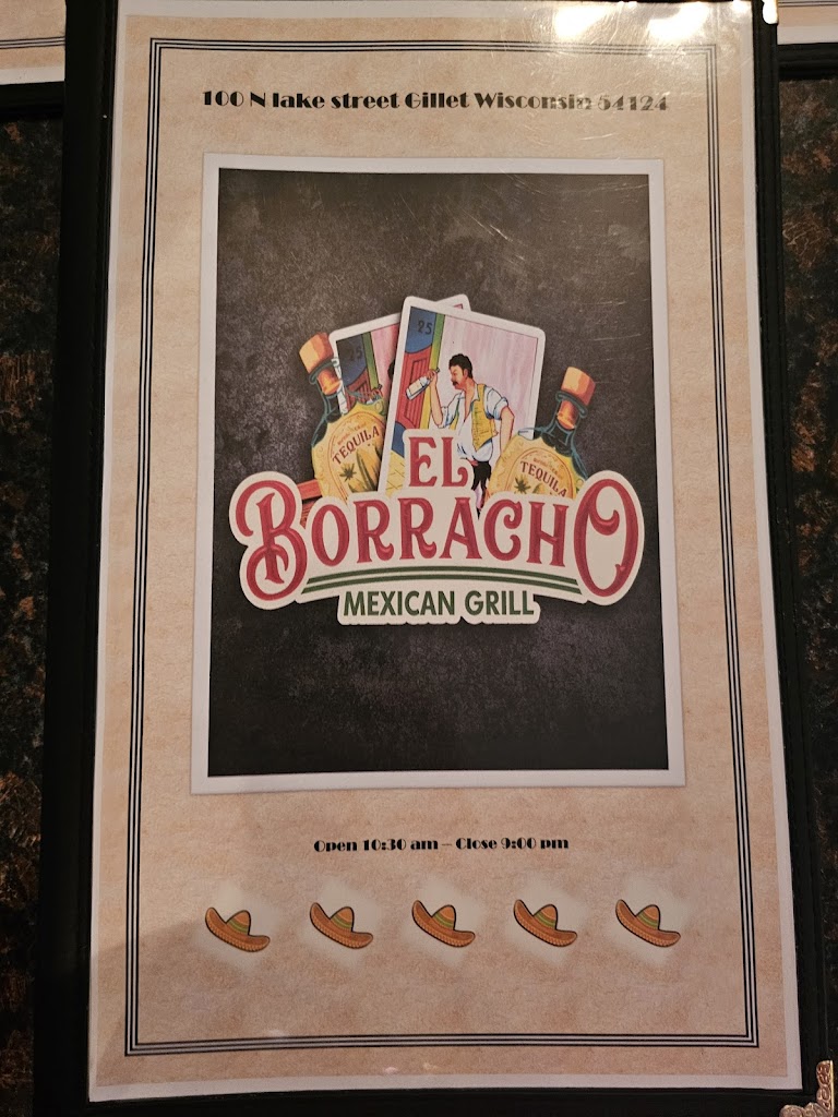 Hello, I am one of the proud owners of El Borracho Mexican Grill! We have such a wide variety on mexican dishes, delicious deserts, variety on margaritas/mix drinks, alcohol and wine, and sodas/juice! We have tv at the bar to enjoy game day and offer free WIFI!!! Come on by and enjoy all we have to offer daily from 10:30a:m until 9:00p:m!