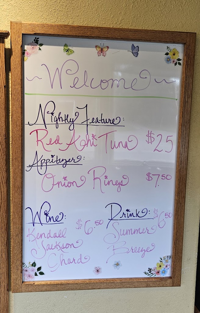 Italian influenced menu with good nightly specials, family friendly and decent prices.