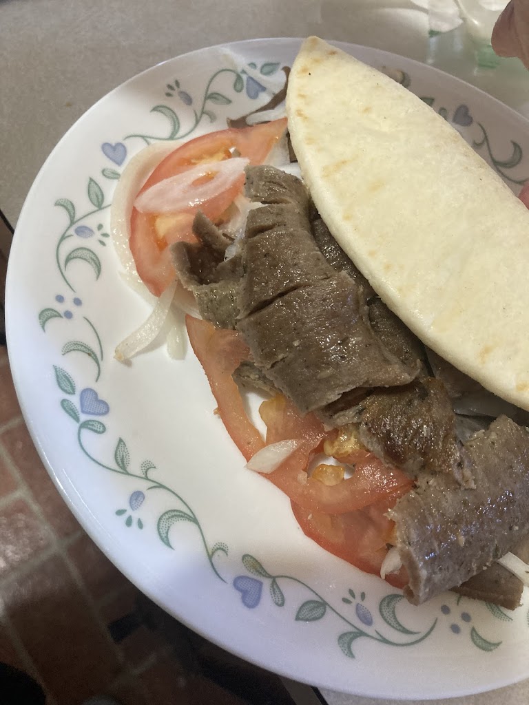 Gyros and fries were great but why put tomato tops ? Gross. Added the trash part of the veggie...