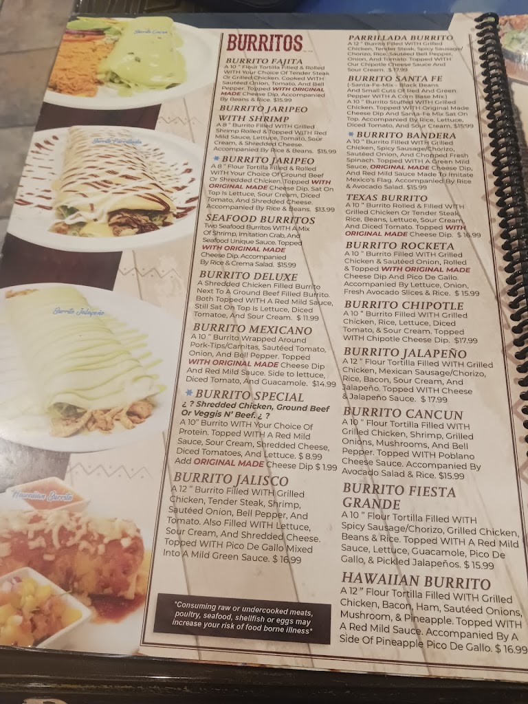 Texas burrito is killer and their queso (white cheese) is also very good.