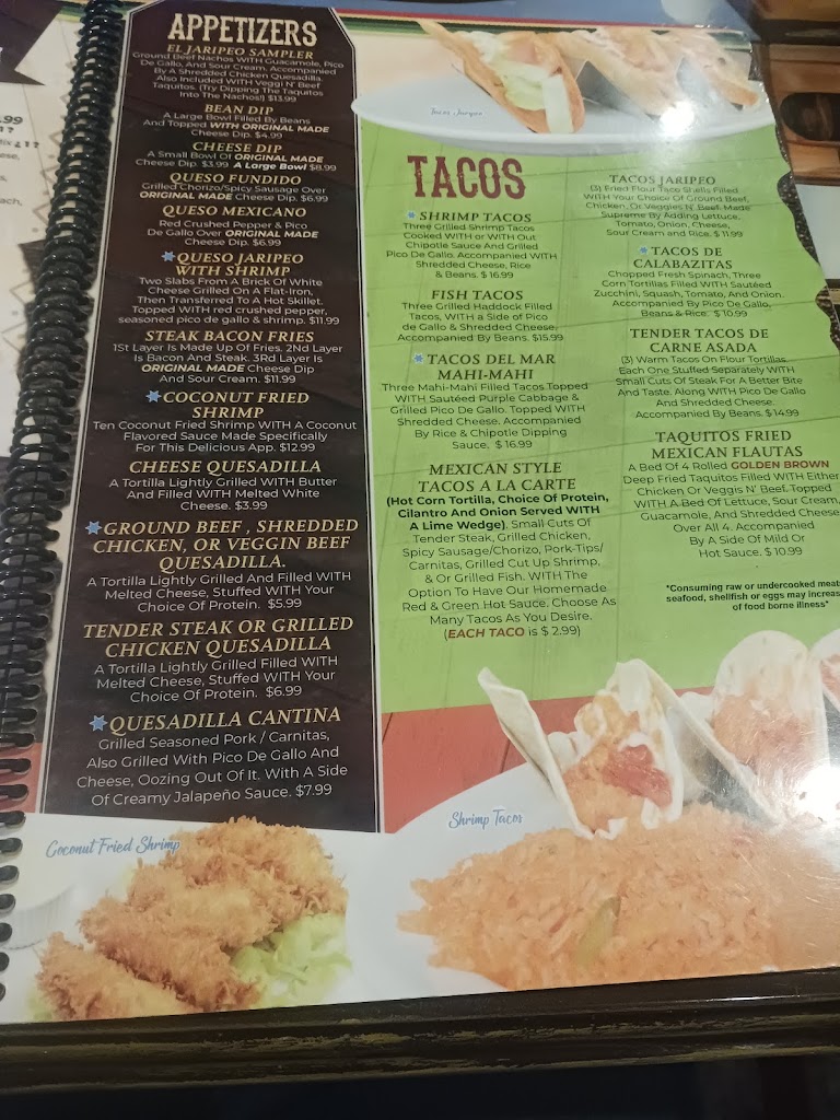 I had the south west chimichanga and my wife had a Quesa Barria with mojitos. Very delicious! Enjoyed the meal and atmosphere.