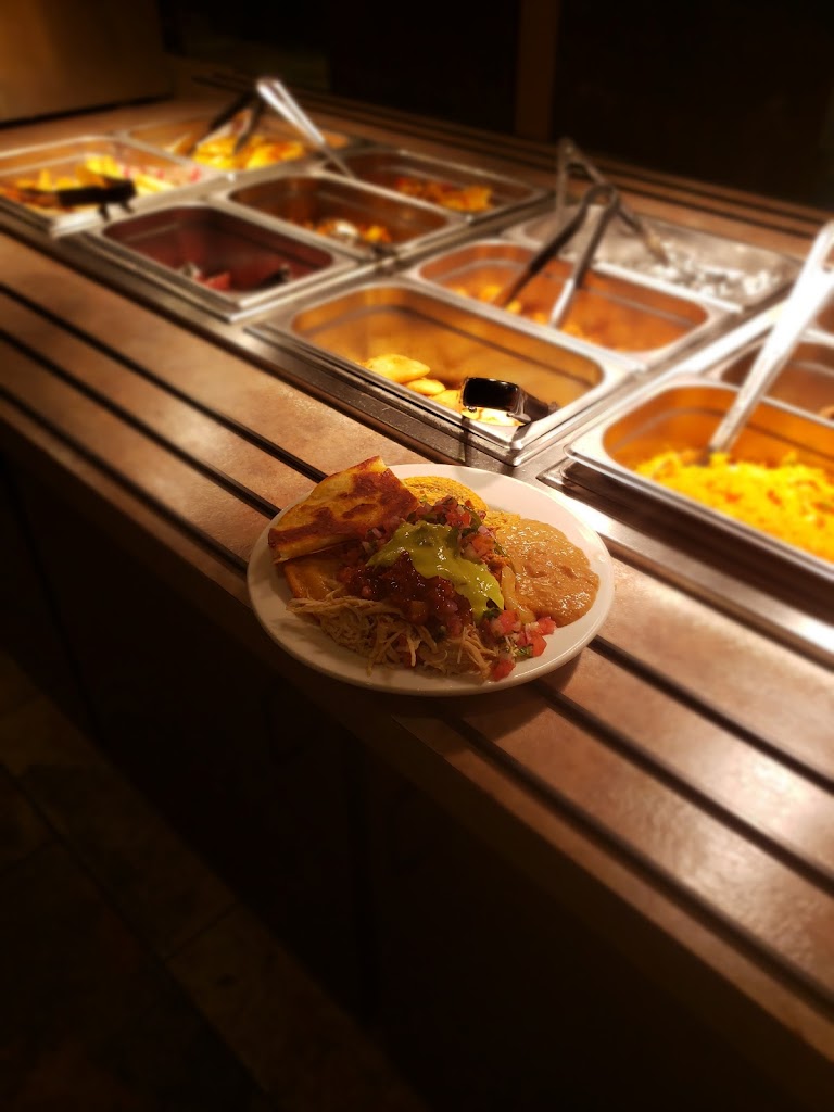 Great food at the food bar and on the menu. The chimichanga is plain tho. I ordered the steak chimichanga and some peices of stake were not cooked good. Otherwise great food. Service is alright besides the fact the staff barely speaks any English. Otherwise the atmosphere is great. The staff always have some sort of sports game on. Next time I'm in town I will think about going here