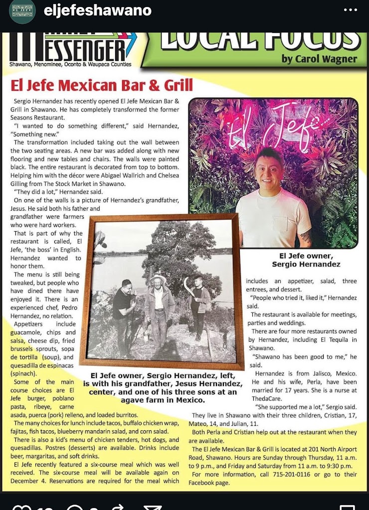 Shawano really needed a place like this where it’s not a supper club or a bar. It’s great quality elevated Mexican food with a lot of style. Well done El Jefe! Hope you will be around for a long time!!