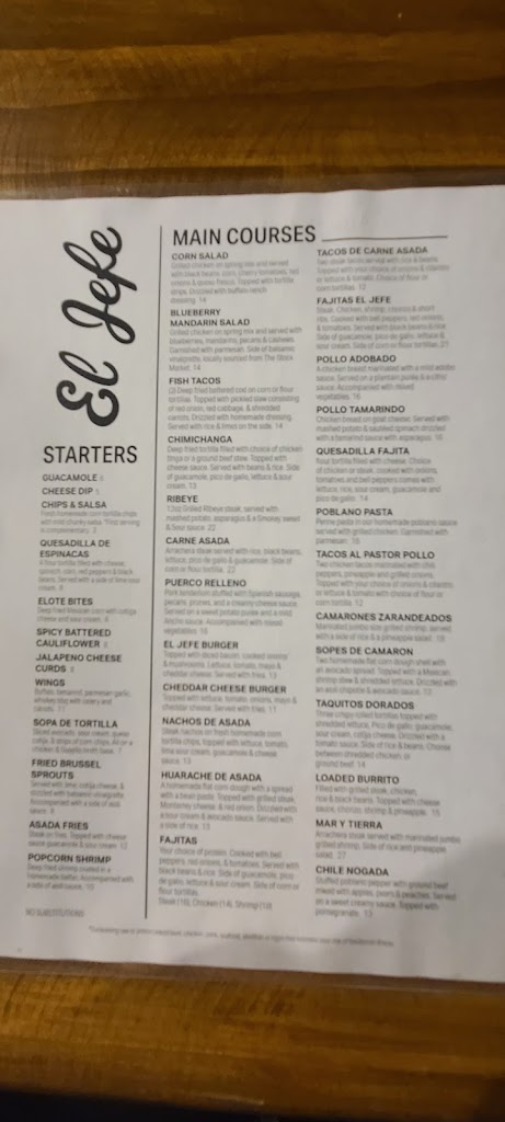 We LOVE going here when we visit our family up north. The service is always on time, kind, and genuine. Their food is out of this world imo. Ingredients taste fresh, well sourced, and made with love. Their menu isn't like other mex. eateries. They have flavors & textures you won't get at your typical Mexican restaurant. I appreciate there daily/weekly specials. The esthetics of El Jefe feela like tropical nights with fake greenery intentionally decorating the place. Would come here on a date, with friends, by myself, or with family. Great place for all occasions. Lots of booth seating