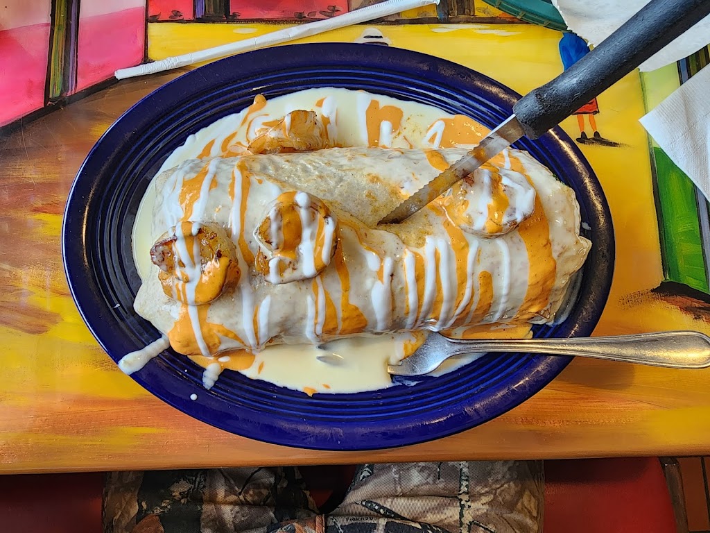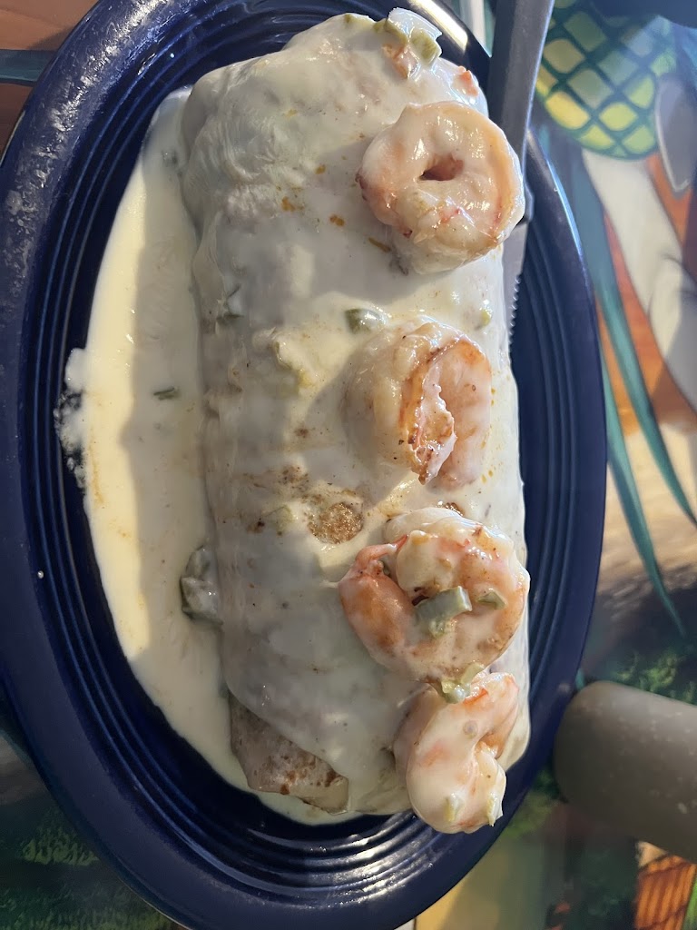 Chimichanga Cancun on special. Loaded with perfect shrimp. This place is a hidden gem. Didn’t show up on google maps. Found by driving by. Hidden gem. Great prices.