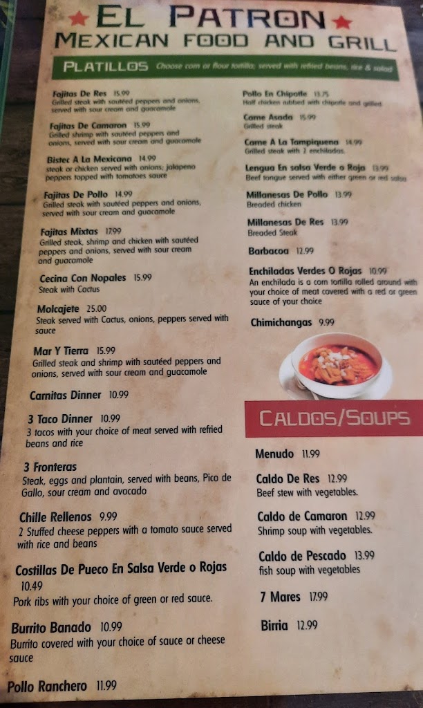 I’m very demanding of my Mexican food and is difficult to please me. El Patron knows how to cook with fidelity the Mexican recipes and beverages!