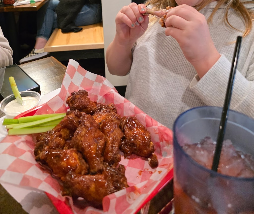 I ordered the ribs, which is probably the worse possible item i could have ordered. Low quality meat, very dry, very bland. They must have marinated it in a salt rub, but that didn't help the flavor the slightest as it was unbearably salty. Ordered it with the Garlic Buffalo sauce — another terrible decision.