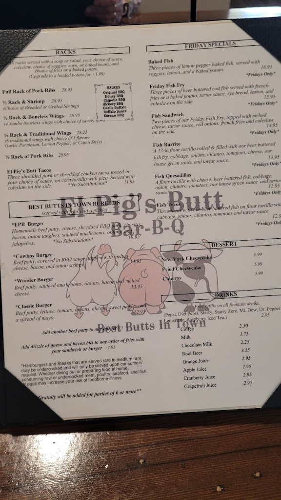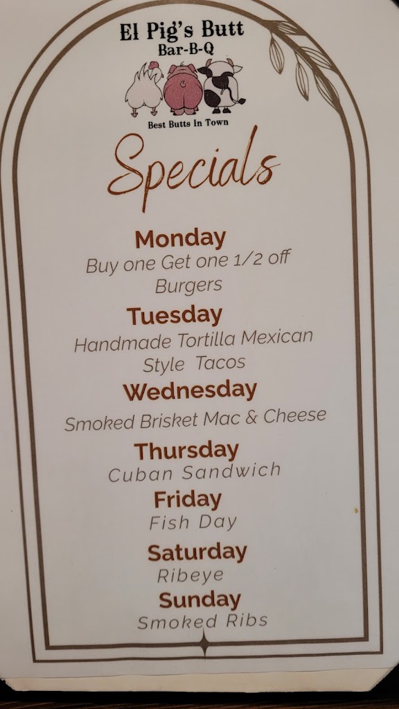 El Pig’s Butt Bar-B-Q is a beloved barbecue restaurant nestled in the heart of Kewaskum, WI, serving the surrounding areas since 2018. Our specialty lies in crafting delectable barbecue creations that tantalize taste buds and leave guests craving more. Whether you're in the mood for perfectly seasoned ribs, sandwiches, or tacos, our menu offers a variety of options to satisfy your barbecue cravings. Beyond our delicious food, we also pride ourselves on offering a selection of refreshing drinks. Stop by today!