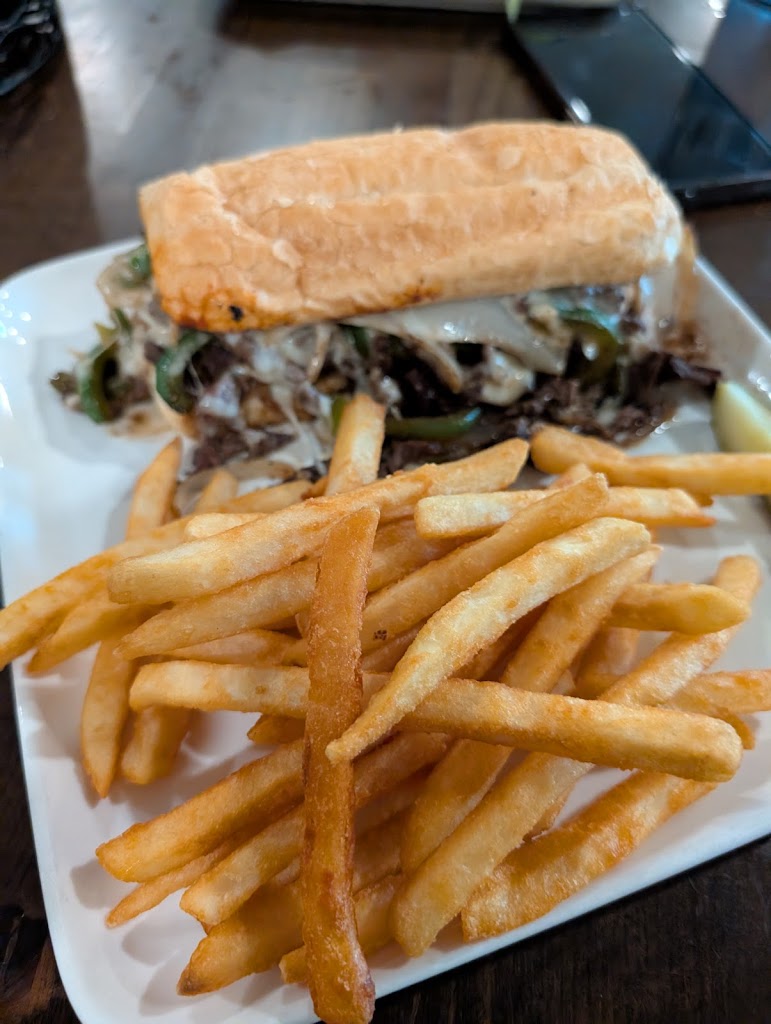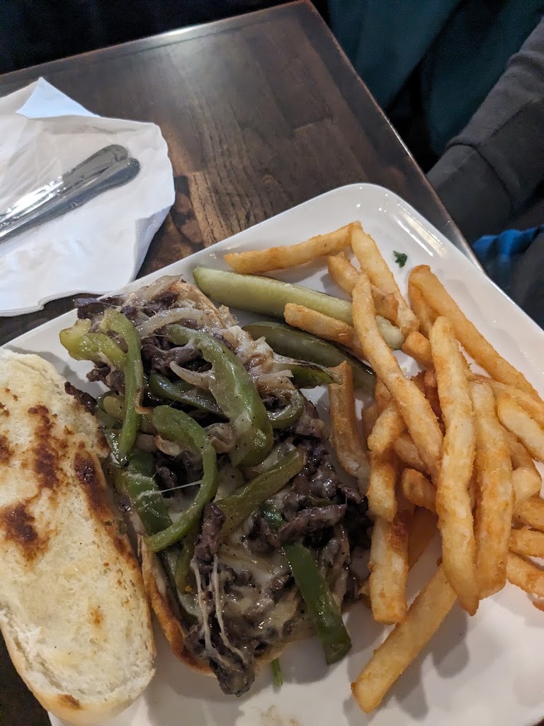 This was my first time dining at the establishment and our server, Chloe, was phenomenal. She was the only one serving and she was busy. Not once did she stop smiling. We had a chicken and steak sandwich. Food was good. We will be back.