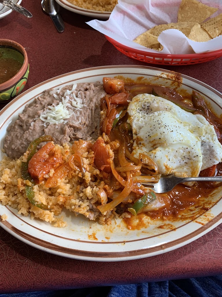 This was our first time here. I had the huevos rancheros. My husband had a chimichanga. And we thought both were very good. My meal was huge and I took over 1/2 home. So the price was great at $10.99