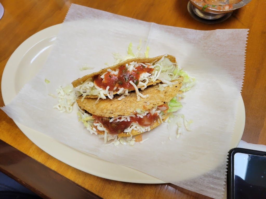 This is the second time I have been to this resturant. The tacos are excellant. Also ordered Chimichanga and Chicken Flautas. Everything tasted great. Great meals at a good price. The resturant is clean and decor is nice.