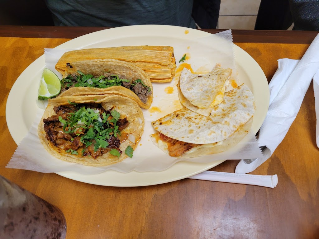 This place is delicious. Al pastor taco, asada enchilada, tamale. All delivered!