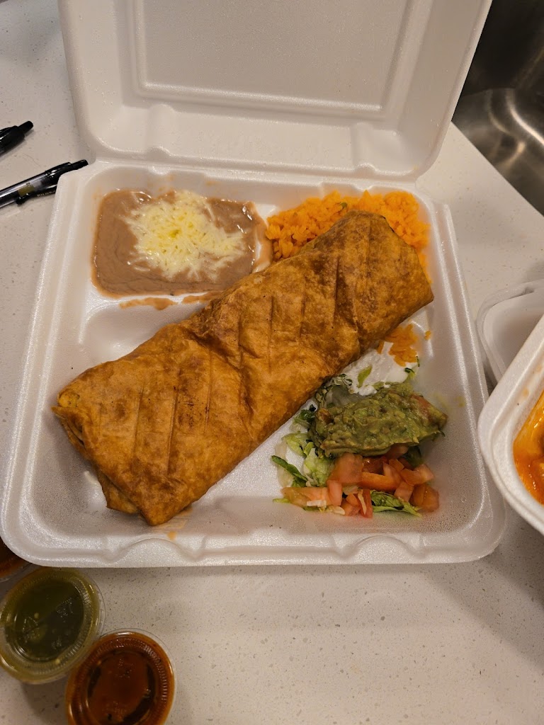The ingredients were fresh, the portions were generous and the flavor was very good. We did a chicken chimichanga, steak tacos and a ground beef tostada.