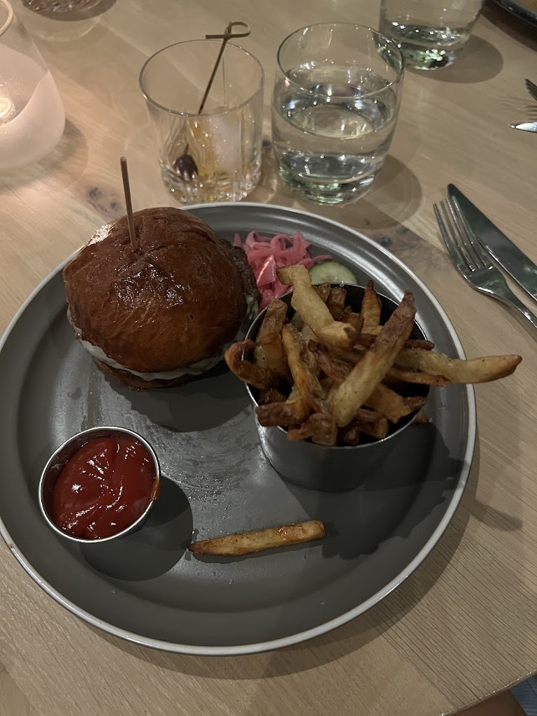 The staff are very nice and professional. The burger was 10/10. The hummus was 10/10.
