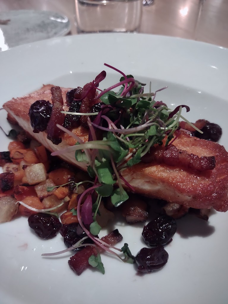 Went there with a group and then for a date night recently. The food was great and so was the service. Loved the salmon three ways and the halibut. My friend really like the chicken too.