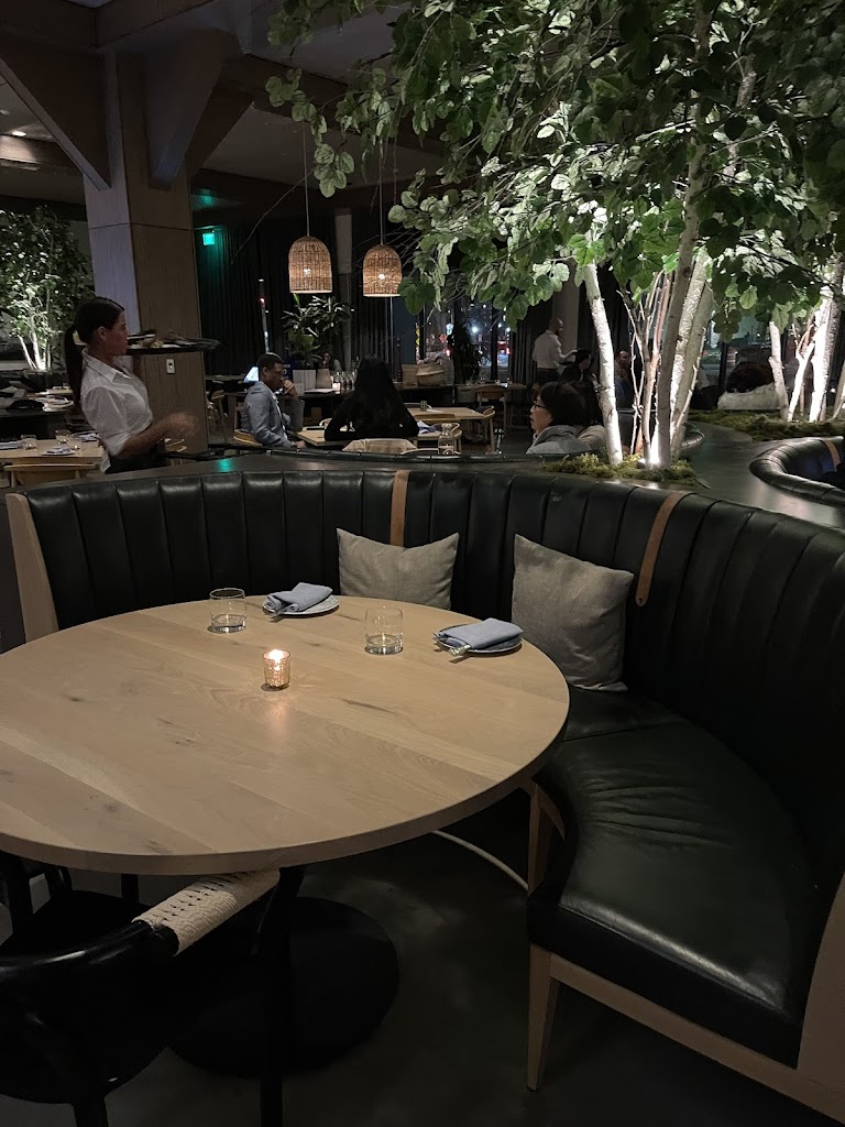 From the moment we walked in, the atmosphere felt warm and cozy — upscale yet inviting. We were seated in a semi-circular booth adorned with pillows, which added an extra level of comfort and charm to the experience.