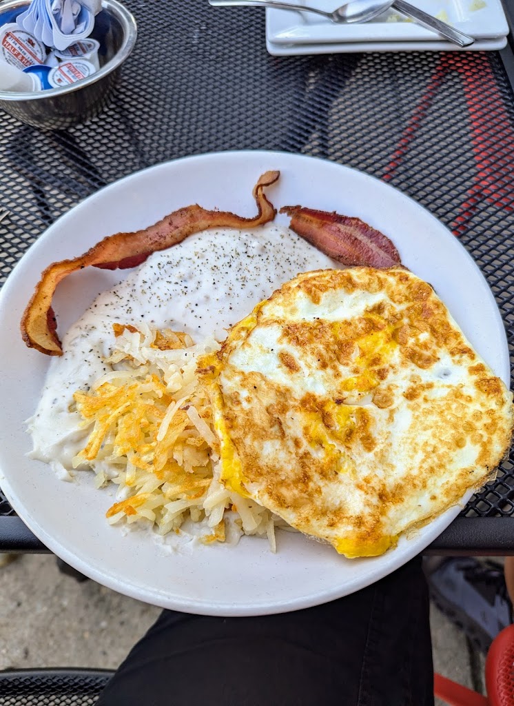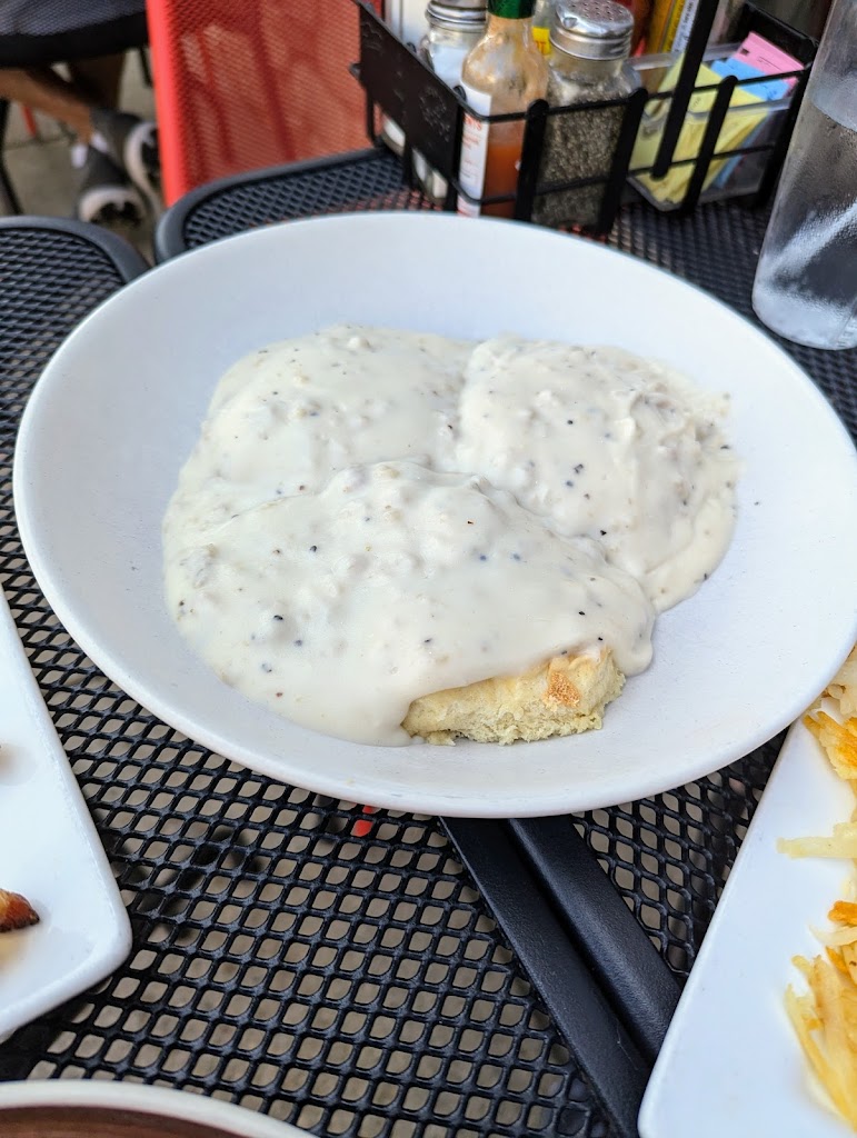 Ordered eggs, biscuits and gravy. The scrambled eggs were runny! The biscuits tasted like Bisquick that wasn't baked long enough ie. raw. The gravy was also disappointing.
