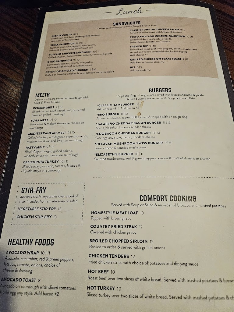 since they changed owners, it's not a place I prefer anymore. the food is not the same, not as good, seems like smaller portions for more of a price. in Delavan, I'd recommend going to a different restaurant, better food for about the same price I guess. but it's better.