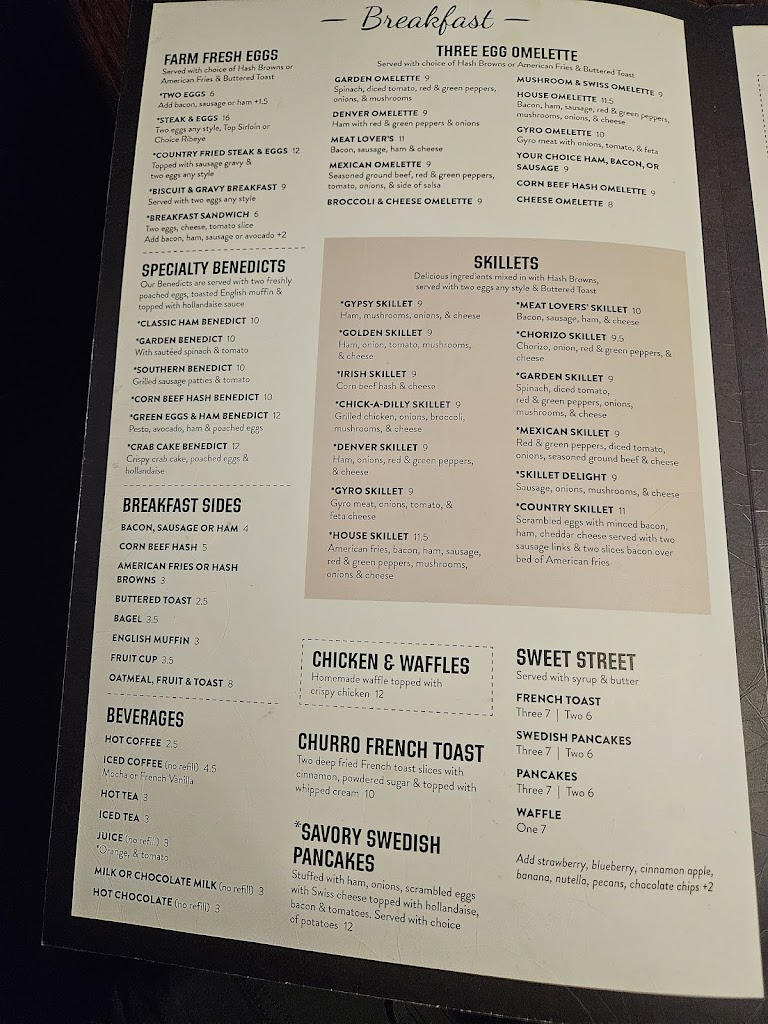 Wow wow wow!!! We are in town for Gary Con. We’ve eaten there twice the last two mornings. Top notch service and food!! We joked about making the 4 1/2 drive for breakfast one morning. Everything we’ve eaten is sooooo good. I saw a one star review cuz the food was “oily” and made her sick. Sis go get your gall bladder checked. None of our food was abnormally oily. In the pictures. The stuffed pancakes, country skillet, Denver omelet and gyro skillet,