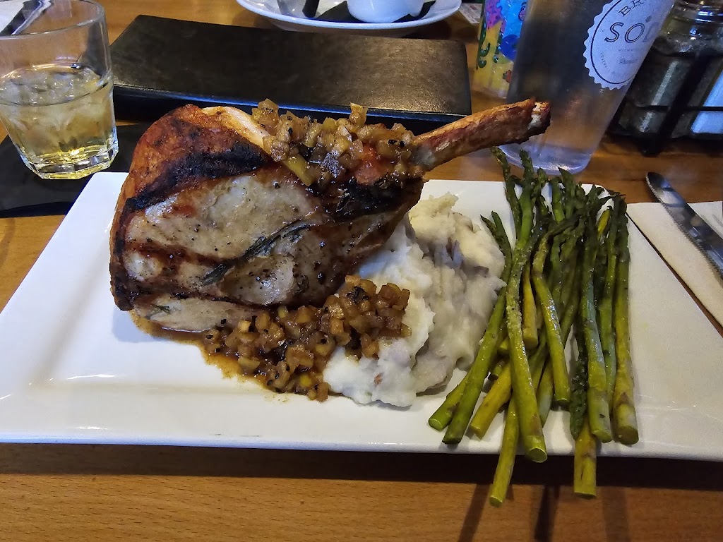 Drove 45 minutes to meet our son for dinner at Ella’s. Never been there before, but glad we took a chance. Great outdoor atmosphere, friendly service and the food was excellent. I personally recommend the 2 inch thick Pork Chop with Apple chutney. It was awesome.