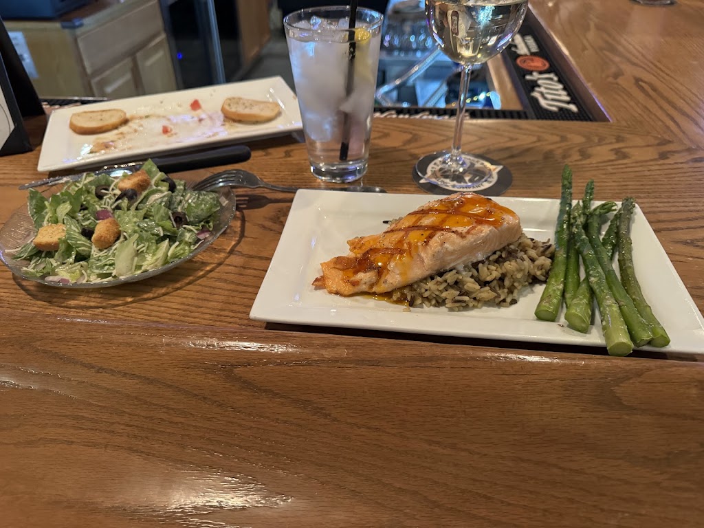 Let me tell you... we come here once a week and have for quite awhile. We completely understand the slow service. That certainly is expected, especially on fish fry Friday. BUT tonight the food was INSANELY salty. First it was the clam chowder which was so salty it was absolutely inedible in my opinion. Then it was my salmon dish. Everything on the plate was so salty that we then felt the need to say something (editing: we did tell the lovely waitress we had so she could make the kitchen staff aware and we URGED her to try the soup for starters, just to understand). The rice... the asparagus... all of it. I just hope everything goes back to the way it was and soon.