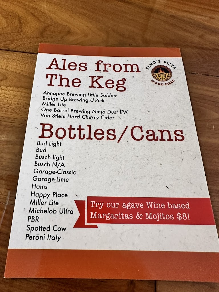 I eat a lot of pizza but living in NE Wisconsin most is traditional thin crust bar pie. So when I saw Elmo’s had artisan pizza I had to try it. Pizza was fantastic with a nice char, service was amazing. Also a good selection of craft brews. All around a five star experience, this place has a very cool vibe. Definitely recommend and will be back!