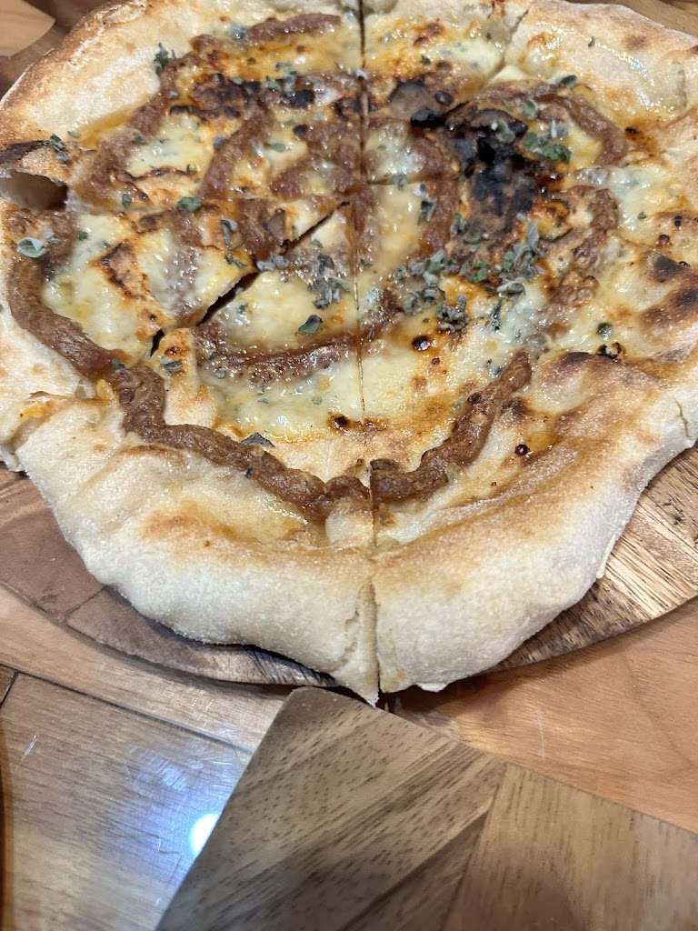 The Dolce Torte wood-fired pizza was creative, perfectly done, and delicious. Excellent cheesy garlic bread. Great laid back vibe. Service was friendly and welcoming.
