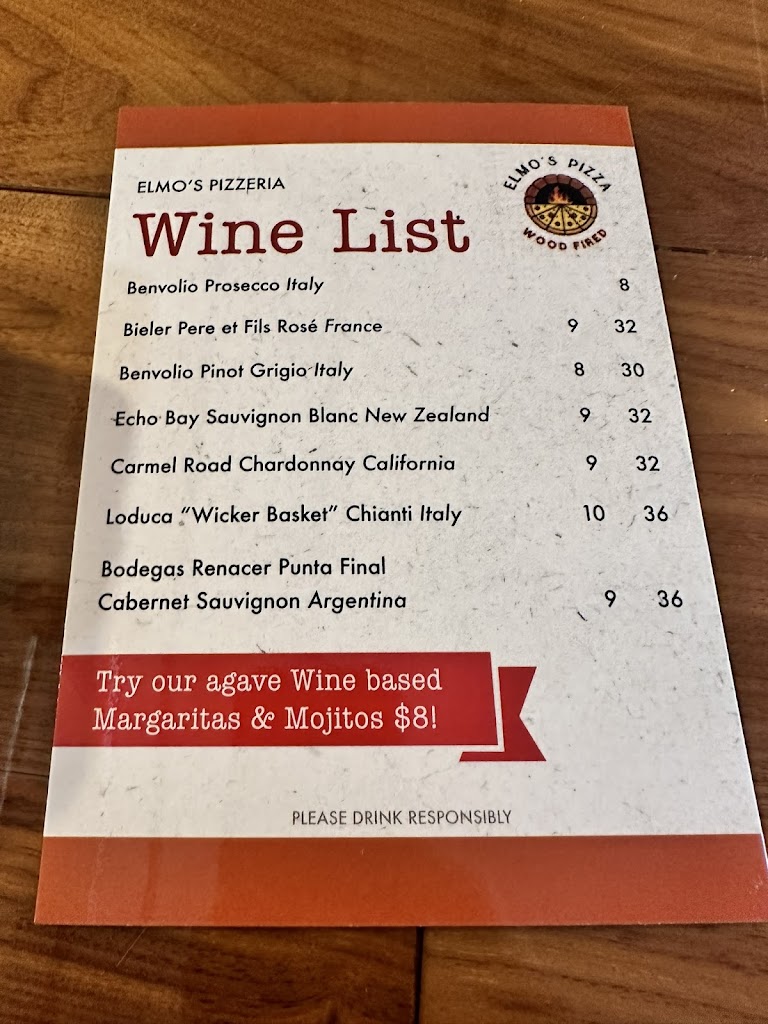 Elmos was great! After being in the business for 30+ years and a pizzeria owner I'd have to say Elmos is top rate. Loved the pizza and the lemon cake. Great people and great pizza! I'll be back.