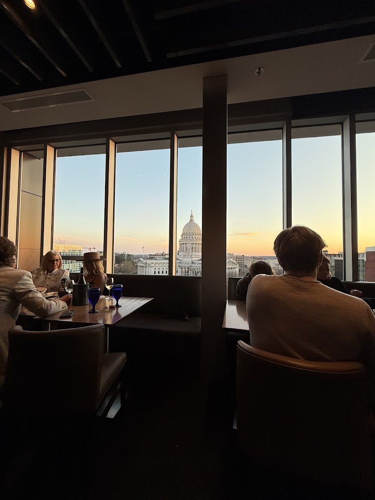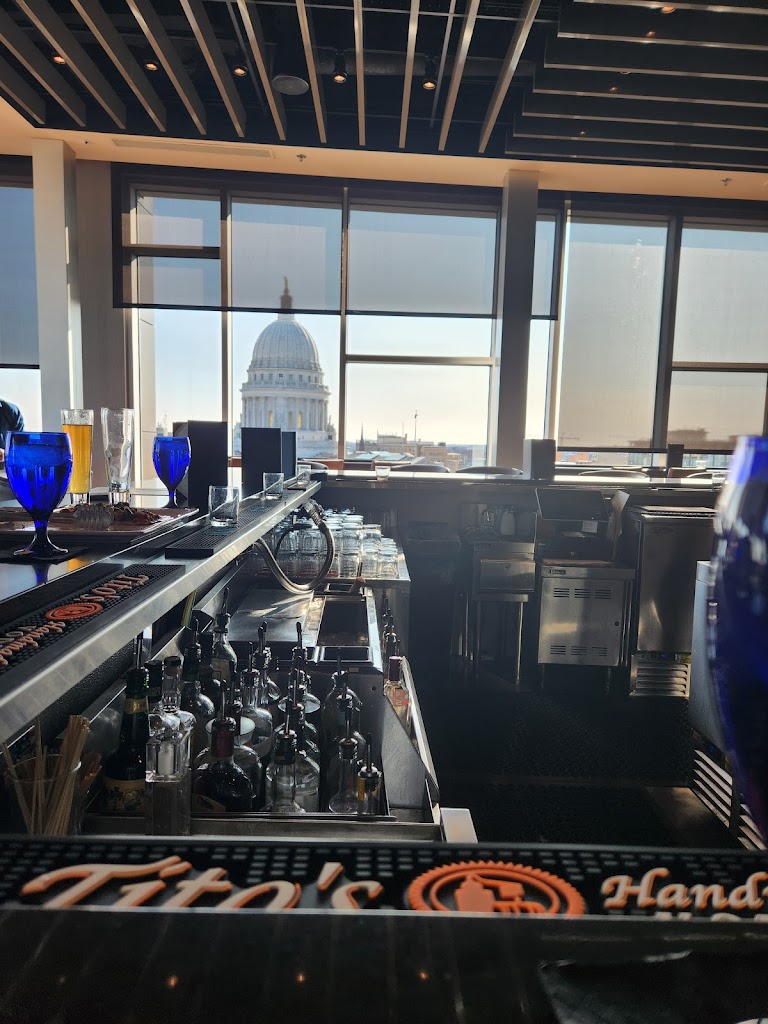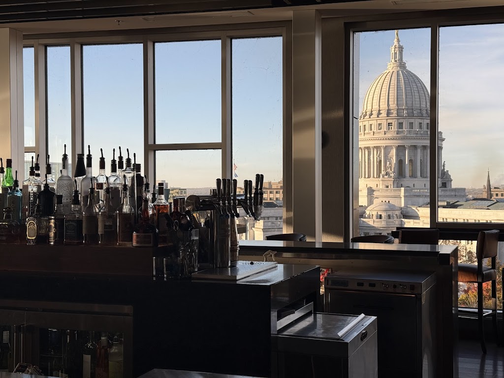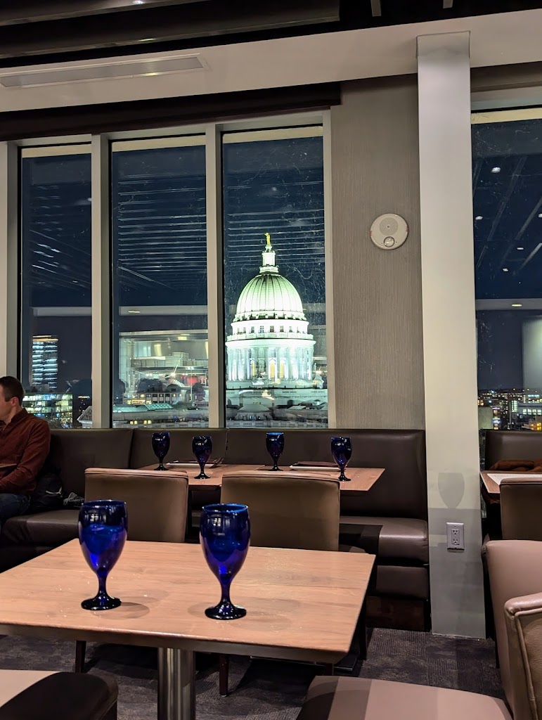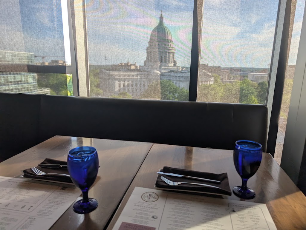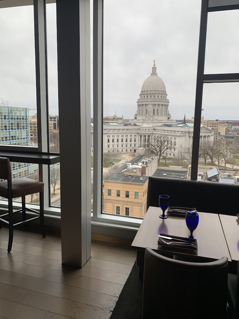We dined at the rooftop patio and had an amazing server. She was very friendly and professional making it a great dining experience. The view of the capital was outstanding. We enjoyed the drinks and food. Highly recommend and we will be back next time we visit Madison