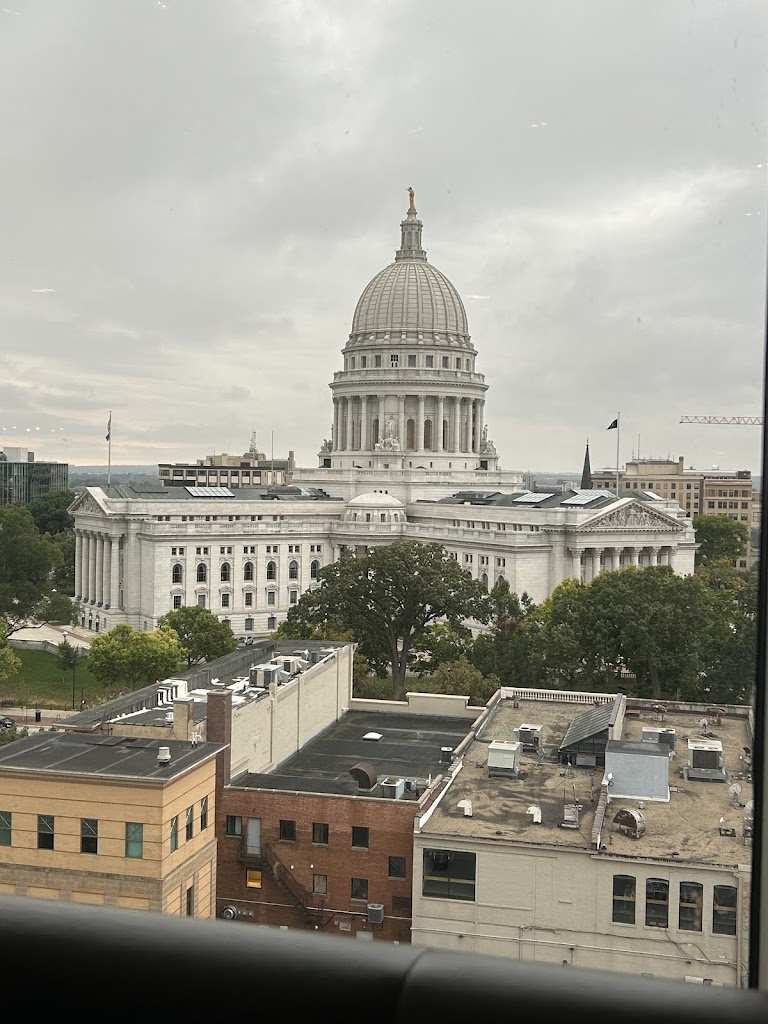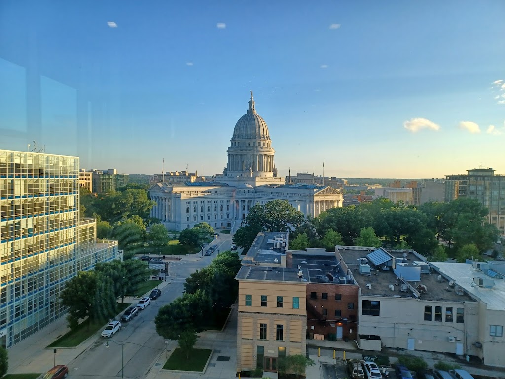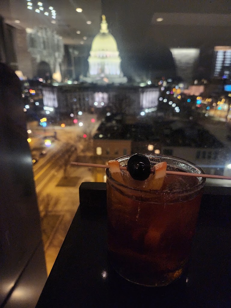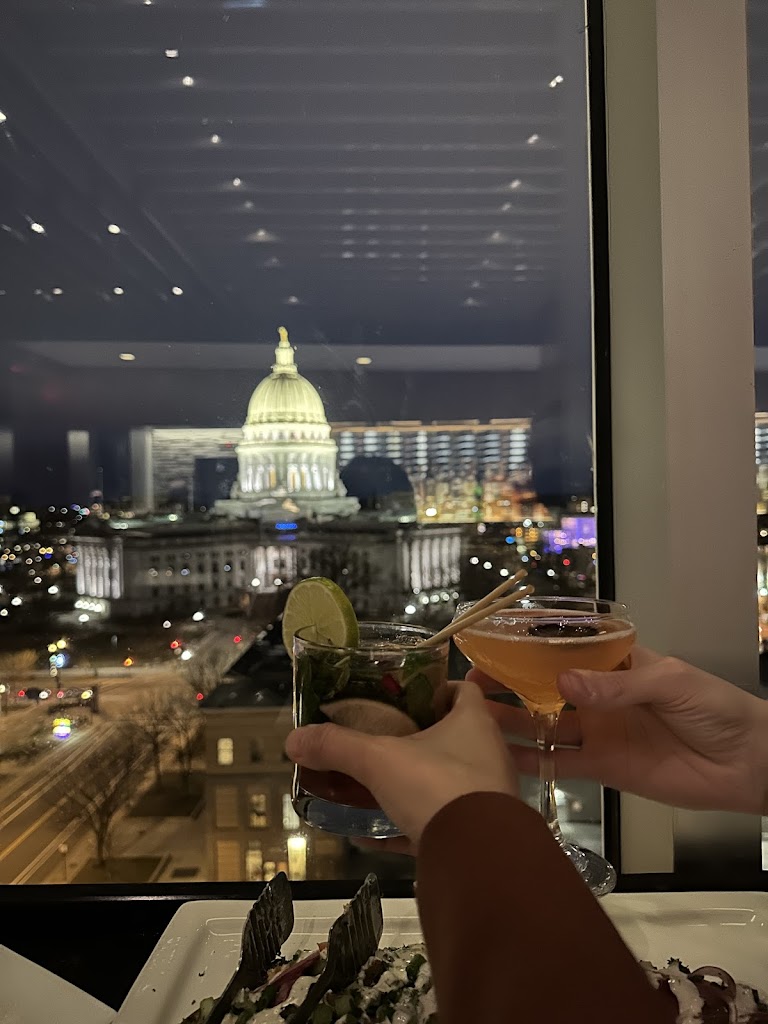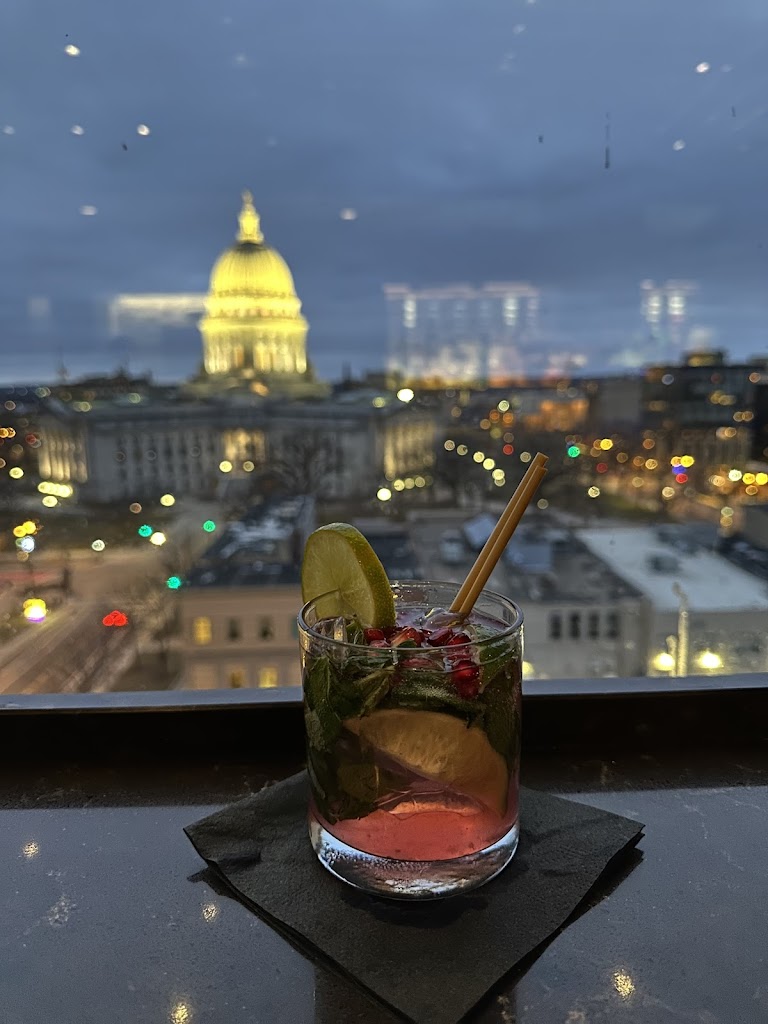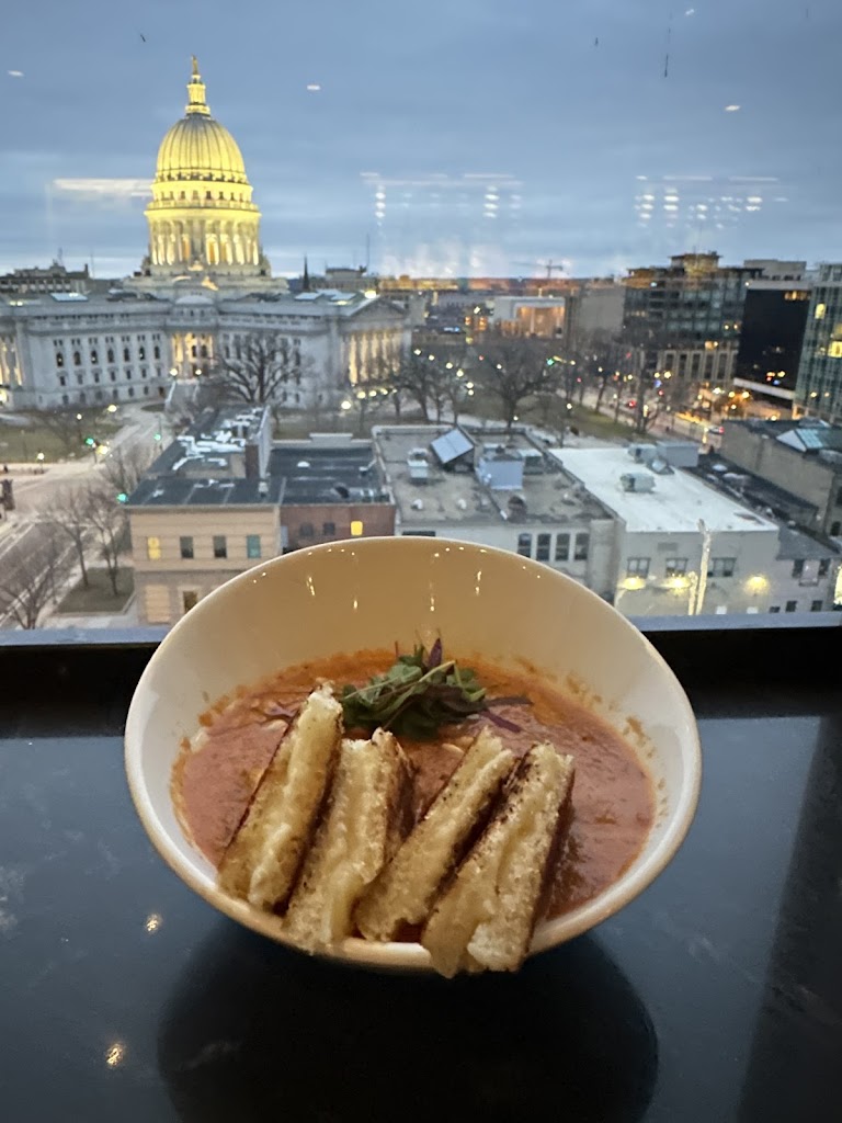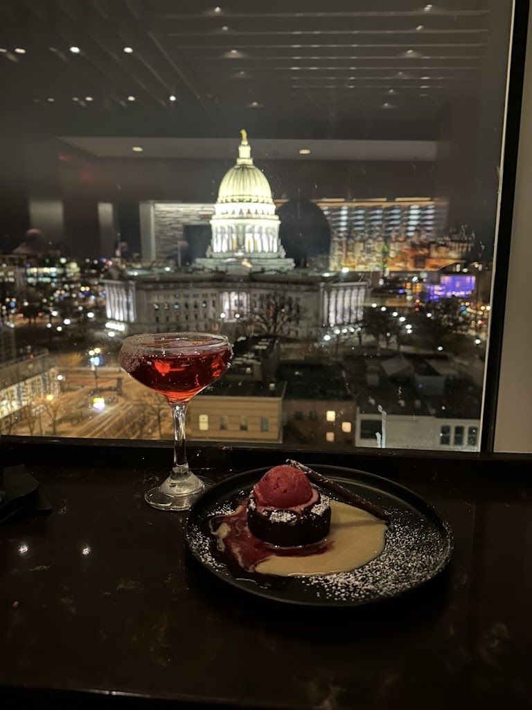 We dined at the rooftop patio and had an amazing server. She was very friendly and professional making it a great dining experience. The view of the capital was outstanding. We enjoyed the drinks and food. Highly recommend and we will be back next time we visit Madison