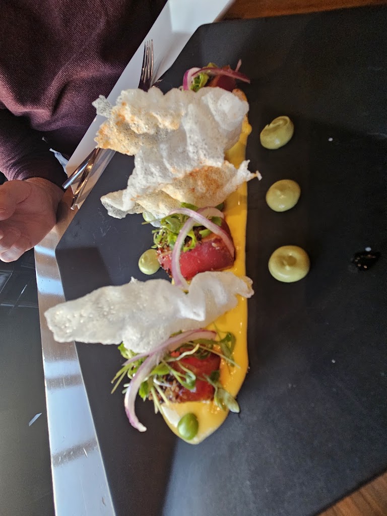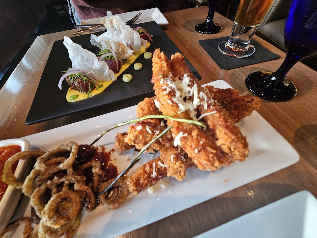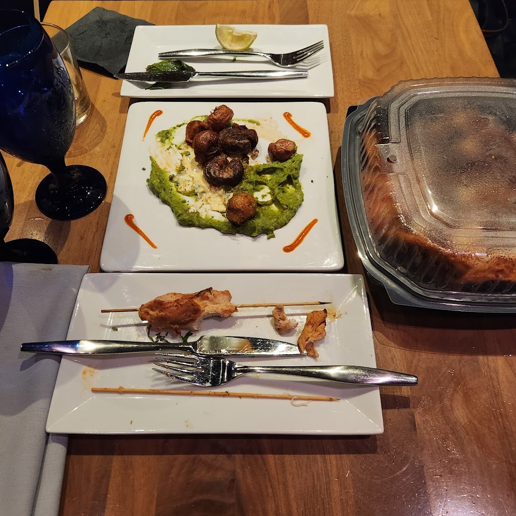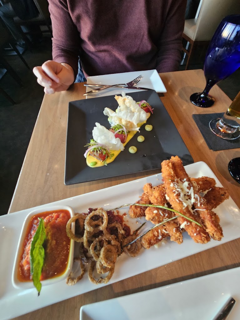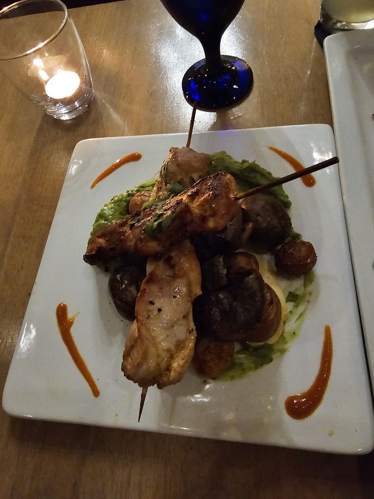 Other than the high noise from other patrons and close proximity to them, this was a terrific experience. We got the calamari fries and the waiter recommended a sweet thai aioli for them which was fantastic. Some of the other items we ordered were bruschetta (apple brie and fig, salmon and tomato/mozzarella) all were good, though the fig was overpowering), chicken thigh kebabs which are served with delicious potatoes on garlic aioli and guacamole. For dessert we got the cremebrulee which was the best I have ever had. Highly recommend.