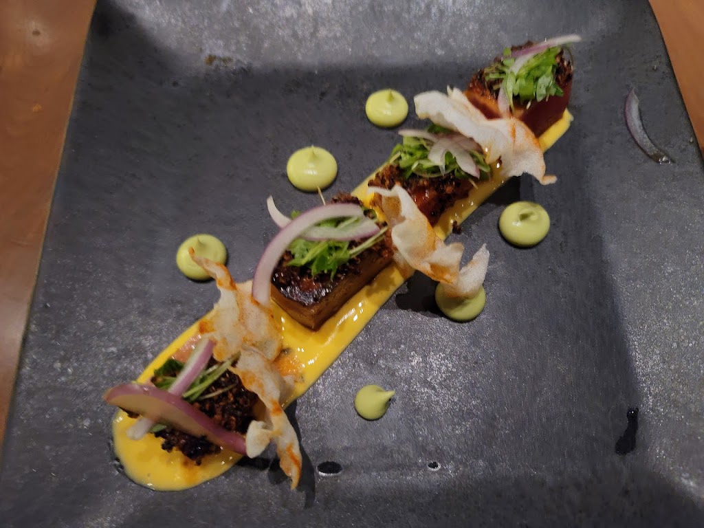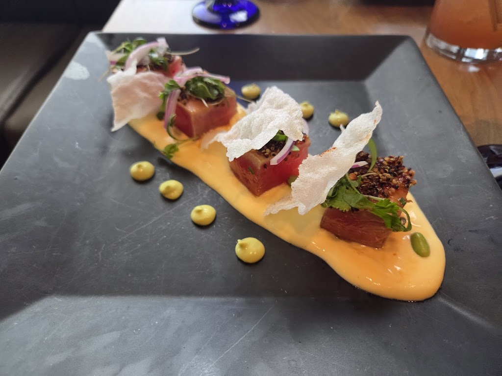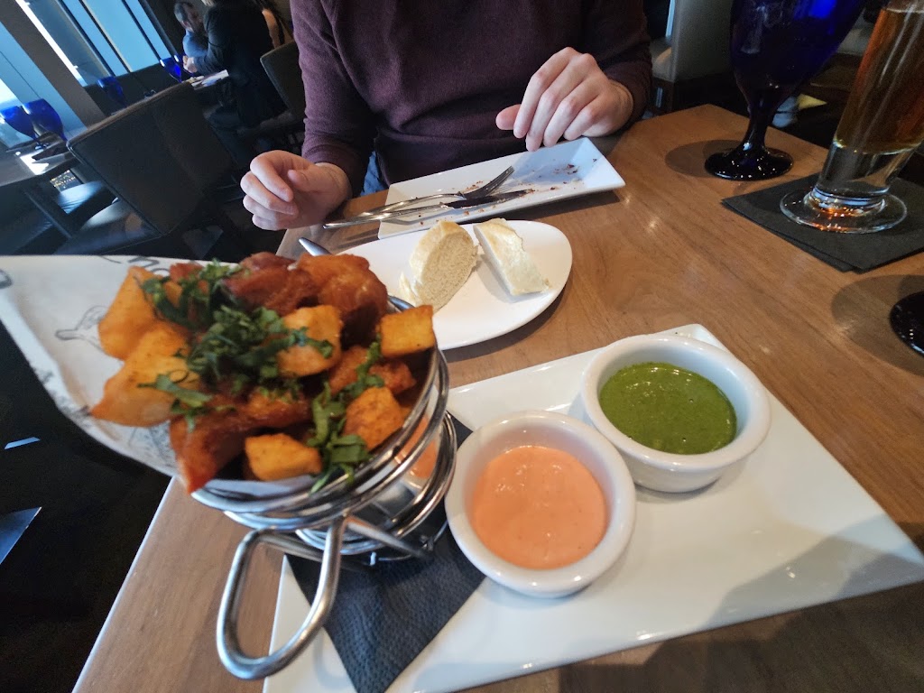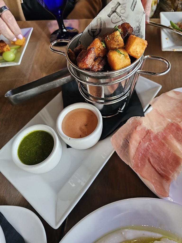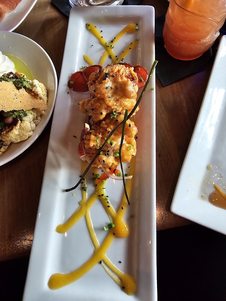 Other than the high noise from other patrons and close proximity to them, this was a terrific experience. We got the calamari fries and the waiter recommended a sweet thai aioli for them which was fantastic. Some of the other items we ordered were bruschetta (apple brie and fig, salmon and tomato/mozzarella) all were good, though the fig was overpowering), chicken thigh kebabs which are served with delicious potatoes on garlic aioli and guacamole. For dessert we got the cremebrulee which was the best I have ever had. Highly recommend.