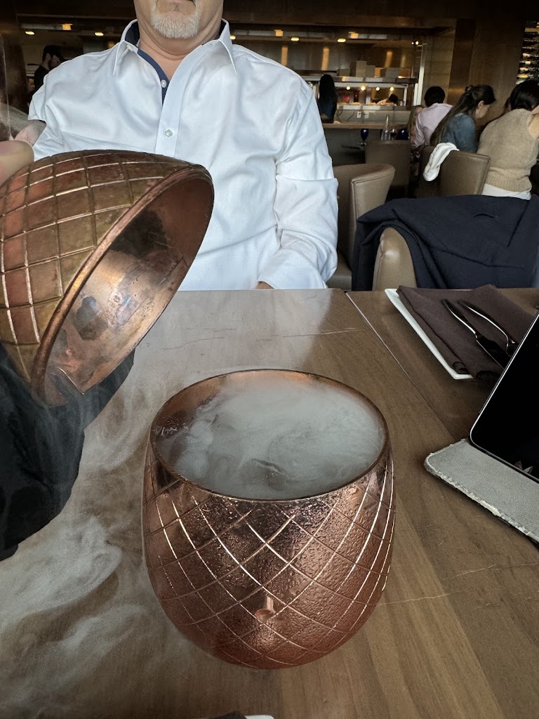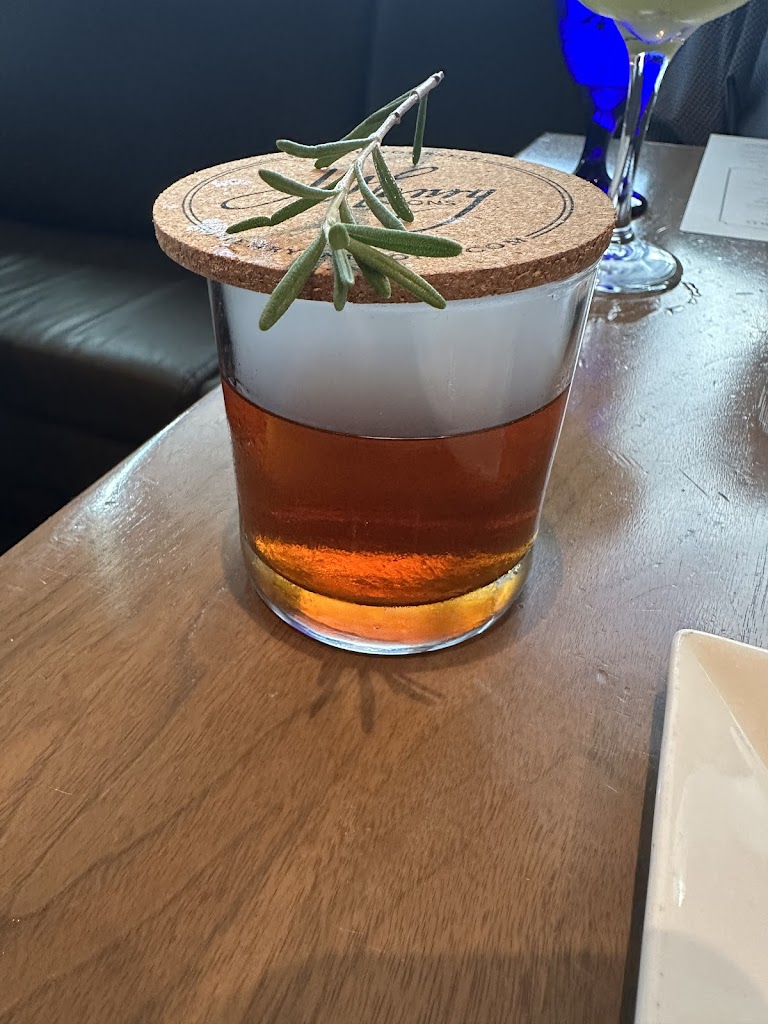Oh, we started with some very nice cocktails including the TJ Henry smoked Old-Fashioned.