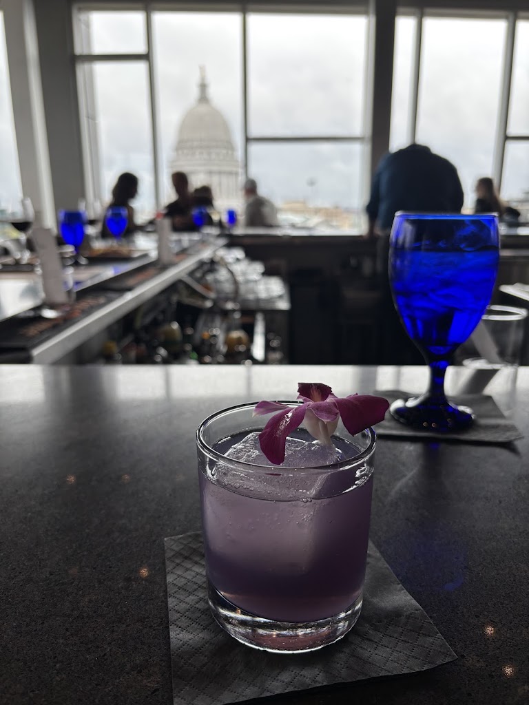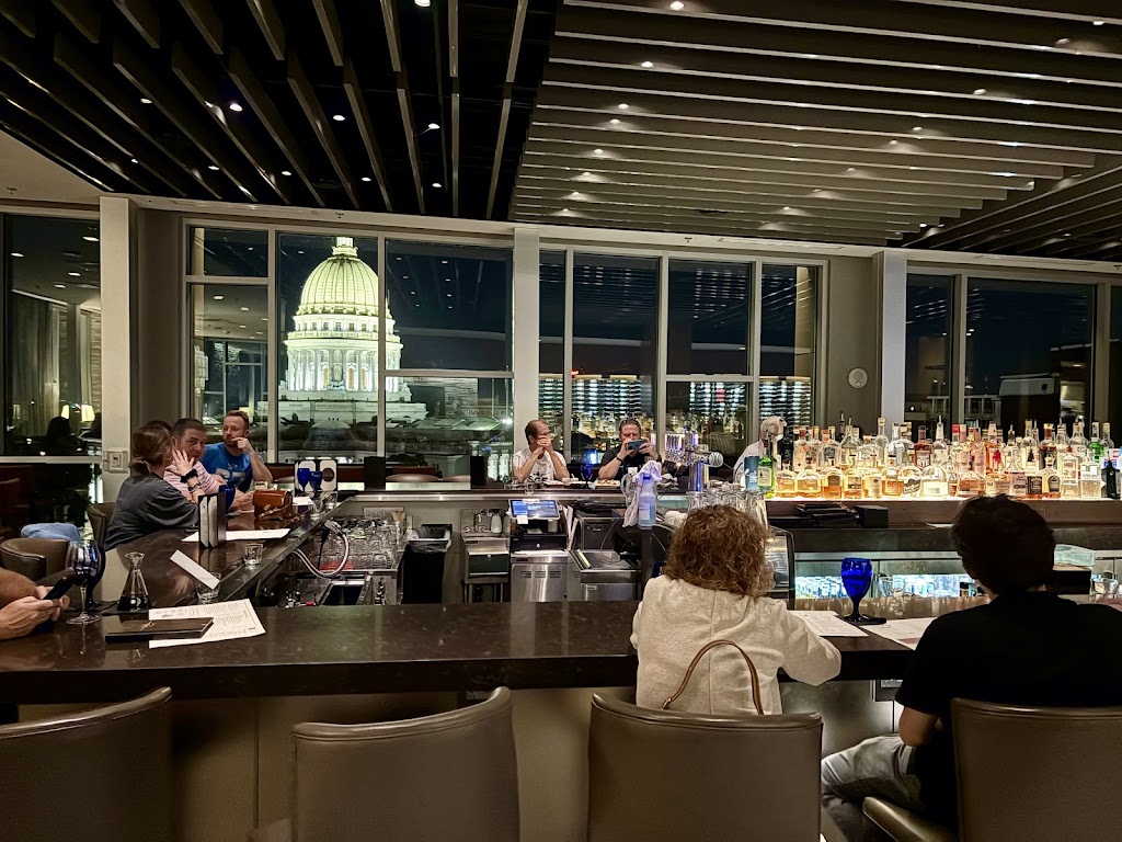 We sat at the bar here and enjoyed some drinks after a comedy show. While the view of the Capitol building was a showstopper, the rest of the interior looked like it could use a little updating. We noticed some torn barstool seats and spider webs on the liquor display shelves. Our bartender was friendly, but the service did feel rushed from start to finish. They do have an excellent wine list and selection of classic or slightly more experimental cocktails. Overall, we had a good experience! I think with a few adjustments, we would have been wowed.