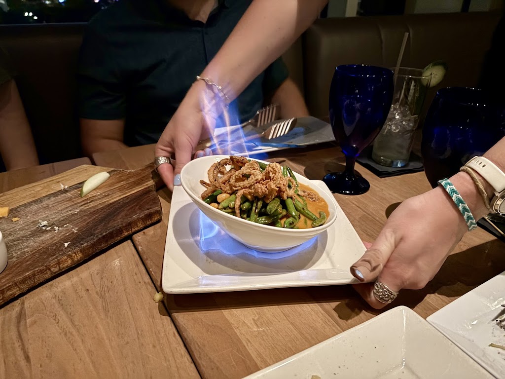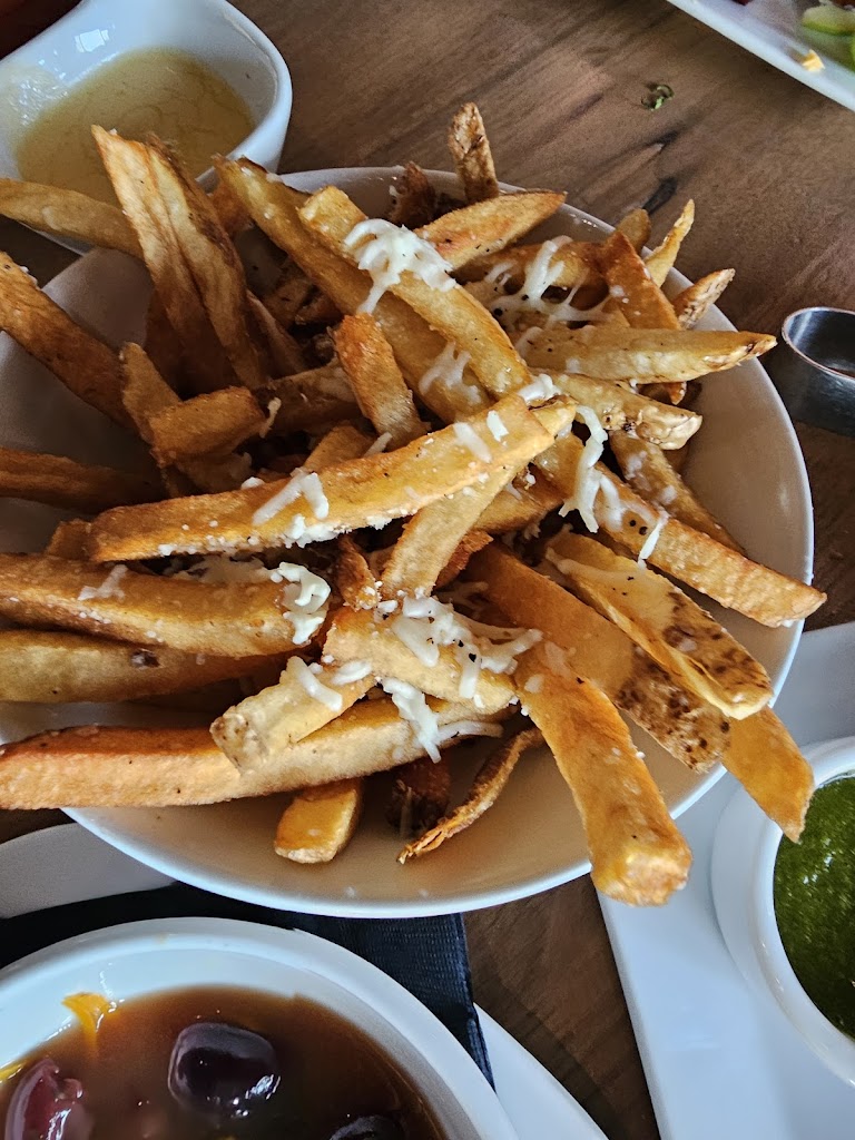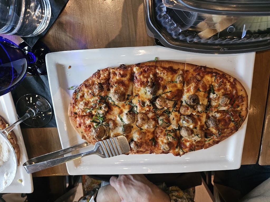 The food was excellent! We had a sausage and mushroom flatbread, truffled fries and green beans. The green beans were exceptional, probably the best bean plate I’ve ever had. Our server was great and offered an appropriate amount of presence (5* to our server).