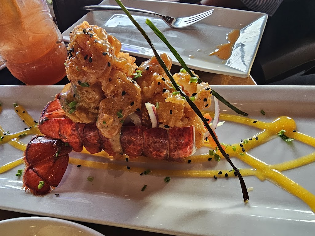 Came for the view and a first time visit for a friend. Split a lobster soup and a NA Heineken. Just had to order an extra claw for $2. Warning the whole is in the soup!