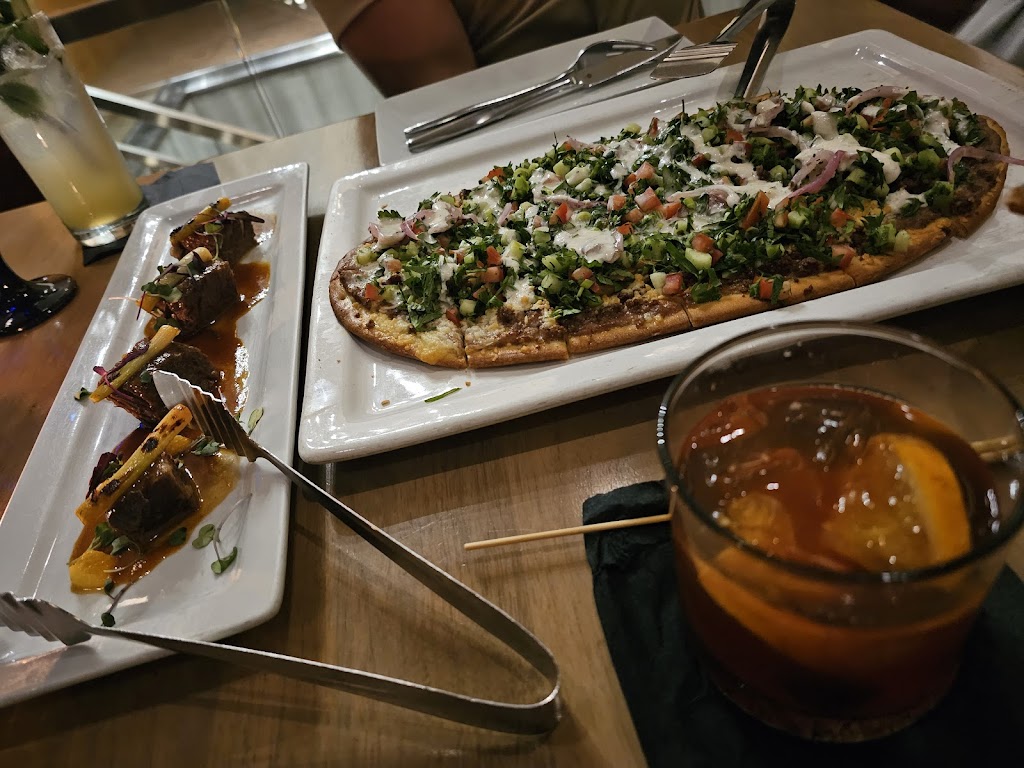 For a 125$ Tango for two, we got the most unenthusiastic server we saw dropped food twice and dropped my fork on my plate. The cheese board had squishy grapes. My partners chicken was so bland and the crispy smashed potatoes were not crispy. My mashed potatoes and braised short ribs were cold. Sauce was flavorful. We had a 9:45 reservation, the they were open until 1am (late night menu didnt even start until 11) but everyone felt like they were trying to push us out. Just was not worth it. Good view except my back was to the window. Maybe was an off night, but for the most expensive meal I've had in months I was disappointed. Should have just went to Cooper's Hawk.