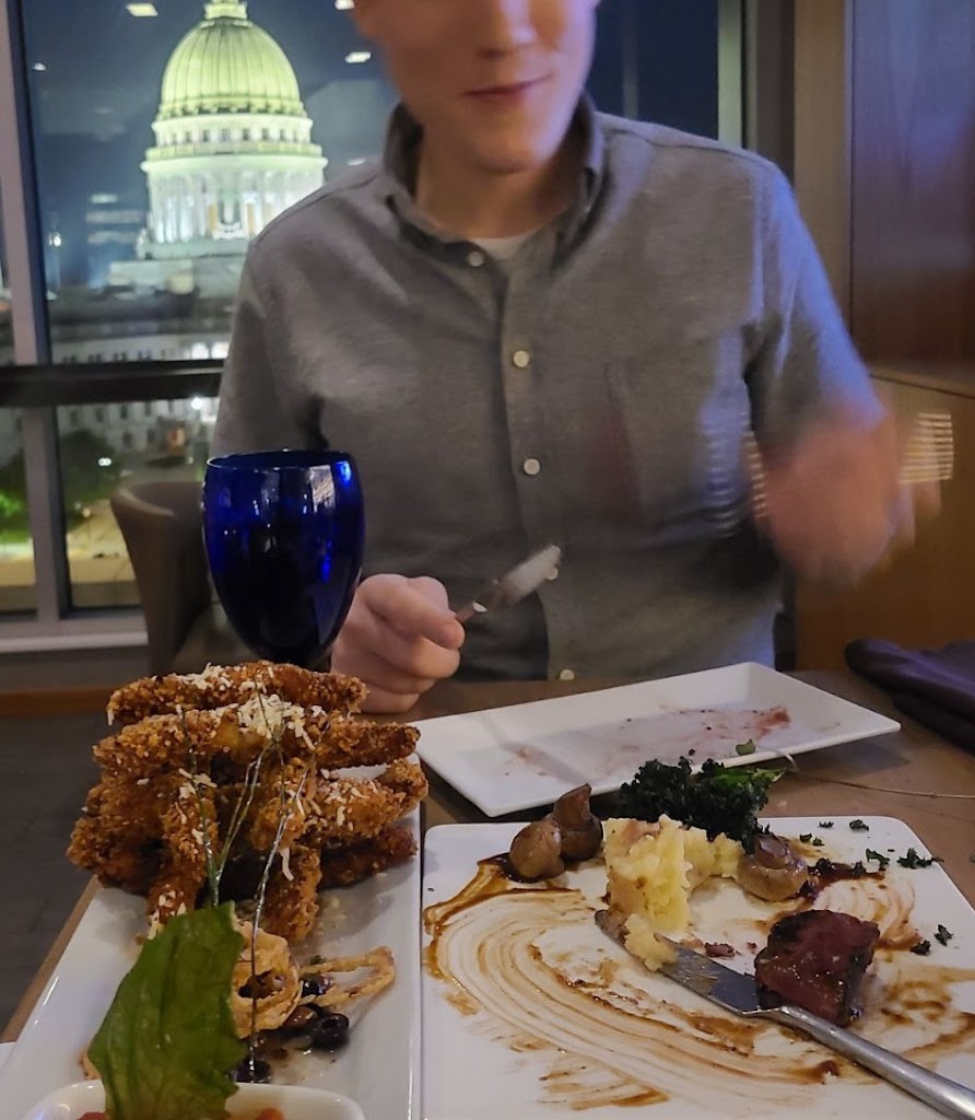 My spouse and I attended a post wedding rehearsal cocktail hour and buffet dinner. The staff were very friendly and accommodating, the food was great, and the views of Madison, the Capitol, and Lake Mendota were fantastic!