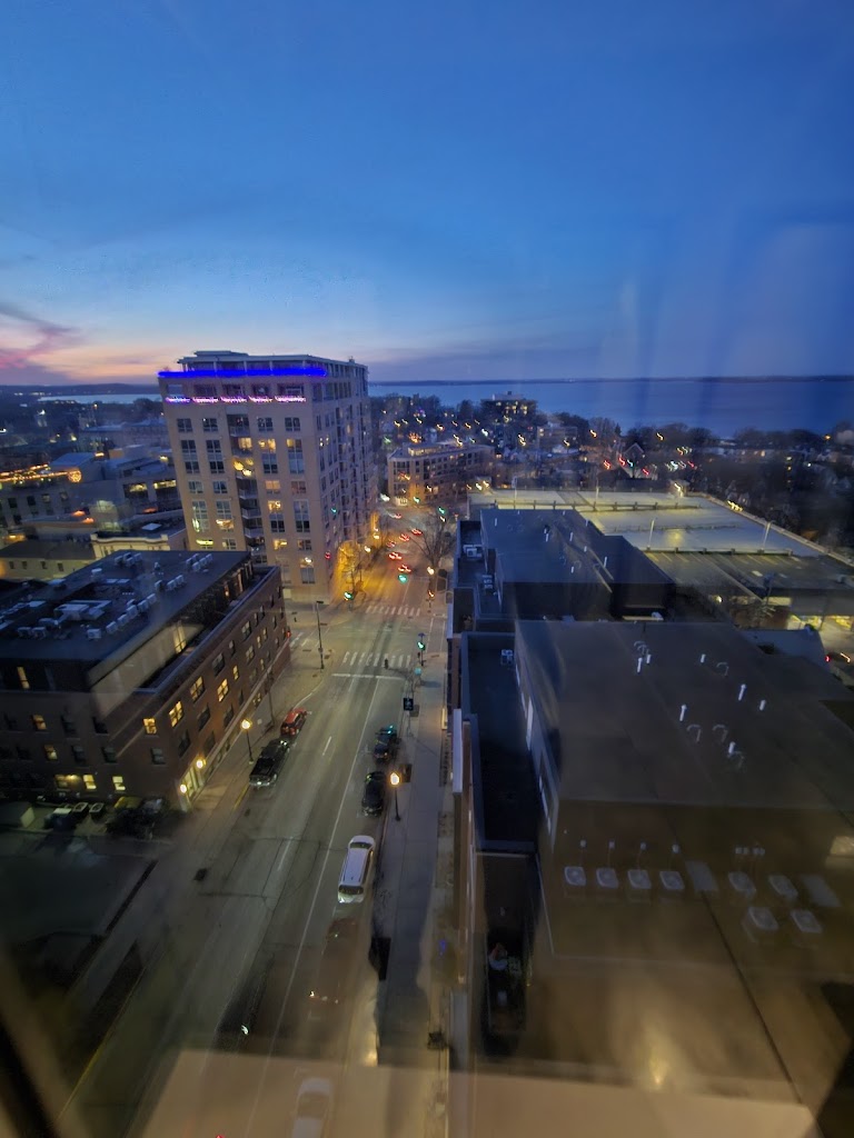 Beautiful view! The pork belly bites were delicious. I will be back on another trip to Madison
