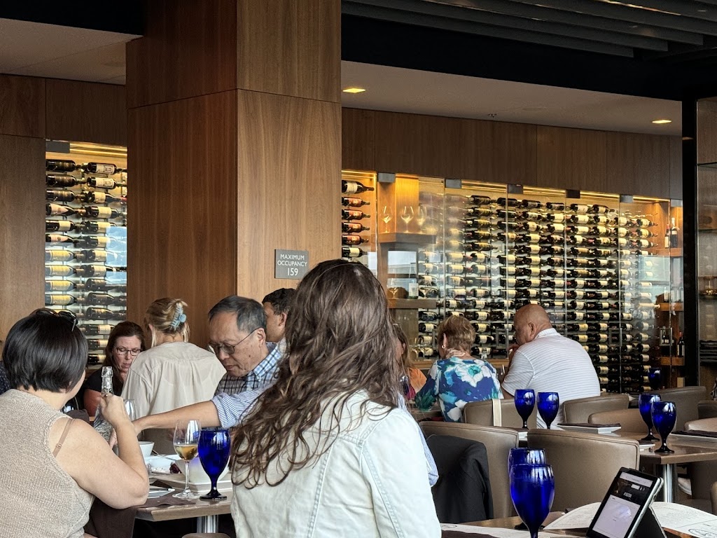 Amazing views of the Capitol !!! Women bring their cameras into the restroom where floor to ceiling windows offer incredible views of the lake and Capitol. Service is always great and, the food, served tapas style, is always delicious! You can order as often as you like so no need to order everything all at once. The food is beautifully presented! I did have a drink this last time that I didn’t care for it as the smoky smell was just too overpowering. It was impressive to remove the lid and see the smoke billowing out. Their non alcoholic drinks are unique and very good. Those celebrating a birthday or anniversary receive a free dessert off the menu.