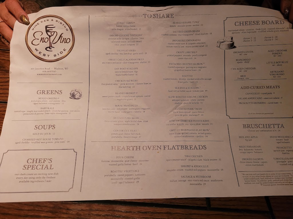 Eno Vino west is not what it used to be. Overpriced food & drink. Staff look unkept & have little to no personality.