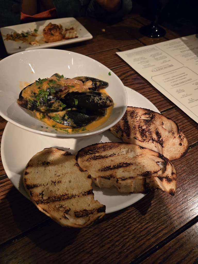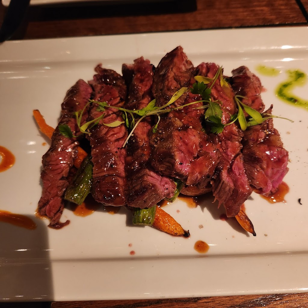 Honestly had high expectations. We really wanted it to be good. We got the cheese platter with Brie, smoked Gouda and Fontina. I’ve had better Brie from Aldi and it would be very hard to mess up Fontina or smoked Gouda. Came with 6 crostinis. For the price very disappointing. Then we had green beans, steak dish, mussel dish, and chicken skewers. Everything was average. There was nothing that truly stood out despite our want for it too. Sadly we also had a hair in our green beans… things happen. The total bill was over 350 dollars. The best thing we had was the charred Caesar salad but it was 14 dollars. The creme brulee was for dessert and was good but honestly as people who like to go out for good food it was disappointing. Would not return.