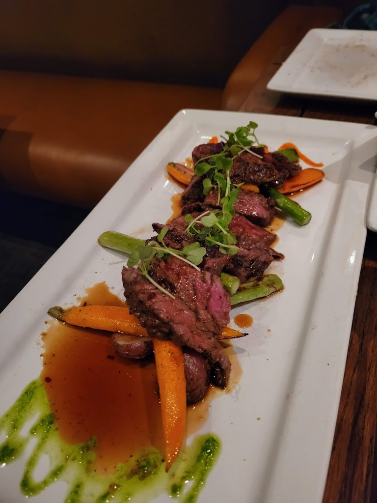 Chicken was overcooked and served as carbon, totally dry. The skirt steak was gummy.
