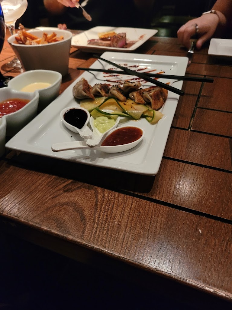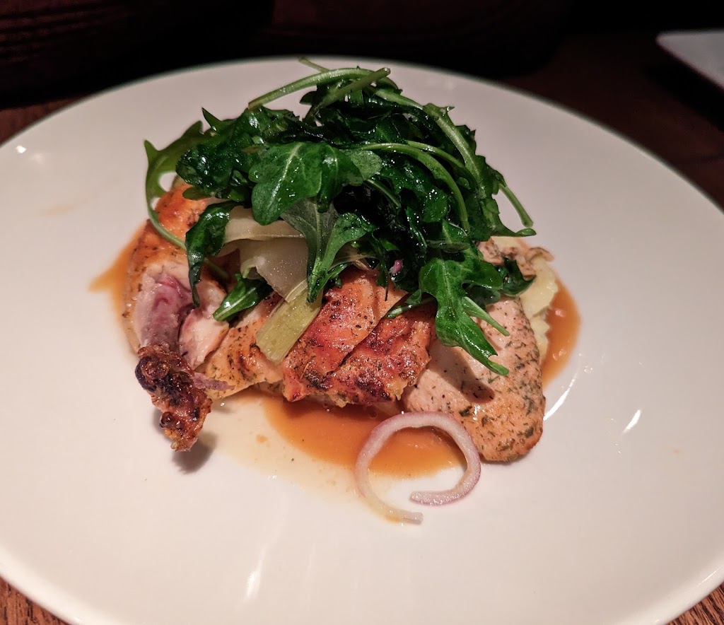 Good was good just didn't like how everything was "shareable." When going to dinner with a group for business, this was uncomfortable passing dishes around hoping there would be enough for what you wanted.